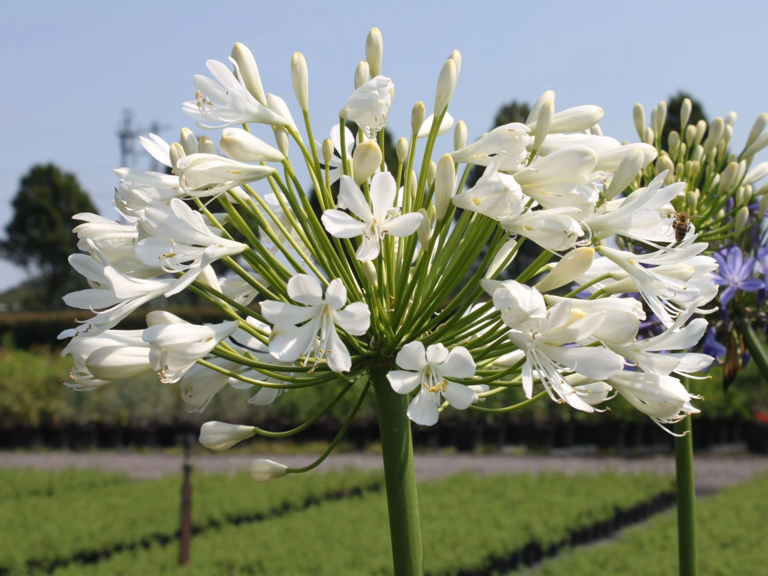 Überzeugend mit reinweißem Charakter. Afrikanische Schmucklilie ‚Albus‘ bereichert den Garten als wertvolle Bienenweide und Schnittpflanze. Ihr reinweißer Blütenflor ist ein wahrer Anziehungspunkt. Diese anspruchslose Pflanze braucht keine intensive Pflege, bei dem entsprechendem Schutz überwintert sie im Blumenbeet. Die schöne Afrikanische Schmucklilie ‚Albus‘ (bot. Agapanthus africanus ‚Albus‘) ist eine Zierde in jedem Garten. Wie alle Schmucklilien, braucht sie viel Sonne. Die Afrikanische Schmucklilie ‚Albus‘ ist ebenso ausgezeichnet für Kübel geeignet, soll allerdings im Winter bei recht kühlen Temperaturen (unter +5°C) im Haus oder im Keller aufbewahrt werden.