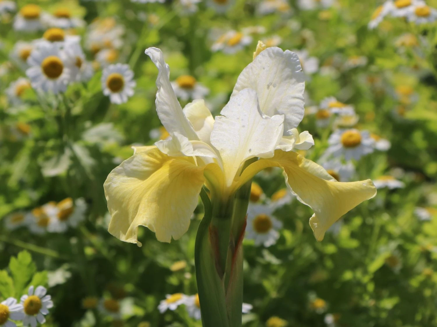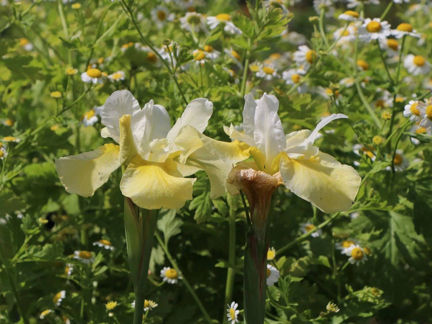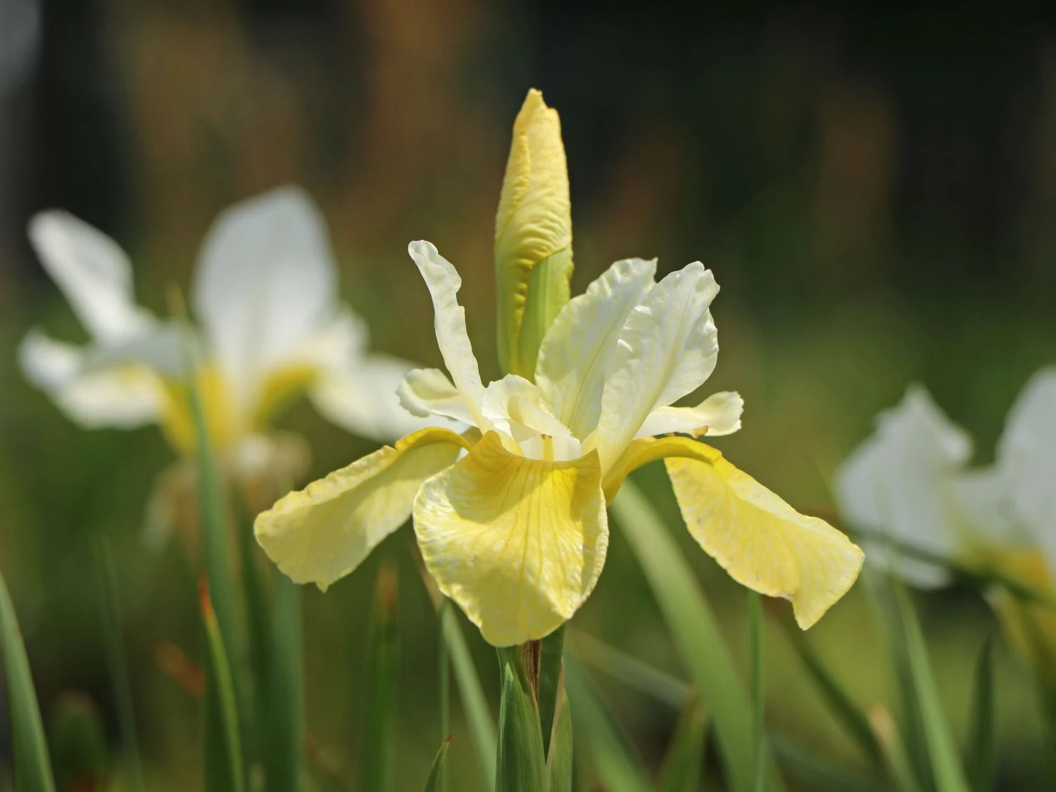 Die Bartlose Schwertlilie ‚Butter and Sugar‘ ist eine Staude, die alleinstehend gut zur Geltung kommt. Auch in Gruppen gepflanzt entwickelt sie sich zu einem prächtigen Blütenmeer. Durch den verzweigten Blütenstand entwickelt die Bartlose Schwertlilie mehrere schöne Blüten. Die mittelgroße Blüte ist in zwei verschiedene Blütenblätter unterteilt. Die Domblätter zeigen sich in einem reinen, weißen Farbton und erinnern an Zucker. Die äußeren Hängeblätter sind Buttergelb gehalten. Viele Blüten entwickeln Sonderformen, die den optischen Reiz dieser schönen Gartenpflanze beträchtlich erhöhen. Die Iris sibirica ‚Butter and Sugar‘ (botanisch) erreicht 40 bis 60 Zentimeter in der Höhe und 30 bis 40 Zentimeter in der Breite. Durch ihre schmale Wuchsform kann der Gärtner durchaus bis zu zehn Pflanzen pro m² in ein Beet setzen. Auf diese Weise entsteht ein sagenhaft schöner Anblick. Blüte an Blüte setzt sich das Gesamtbild, wie auf einer Leinwand gemalt, zu einem wunderbaren Blickfang zusammen. Die grasgrünen Blätter sind länglich und zugespitzt. Der Blattrand ist ganz und ungezahnt. Ebenso hat das Blatt eine glatte Oberfläche. Die Bartlose Schwertlilie ‚Butter and Sugar‘ wächst horstig und bogig geneigt.