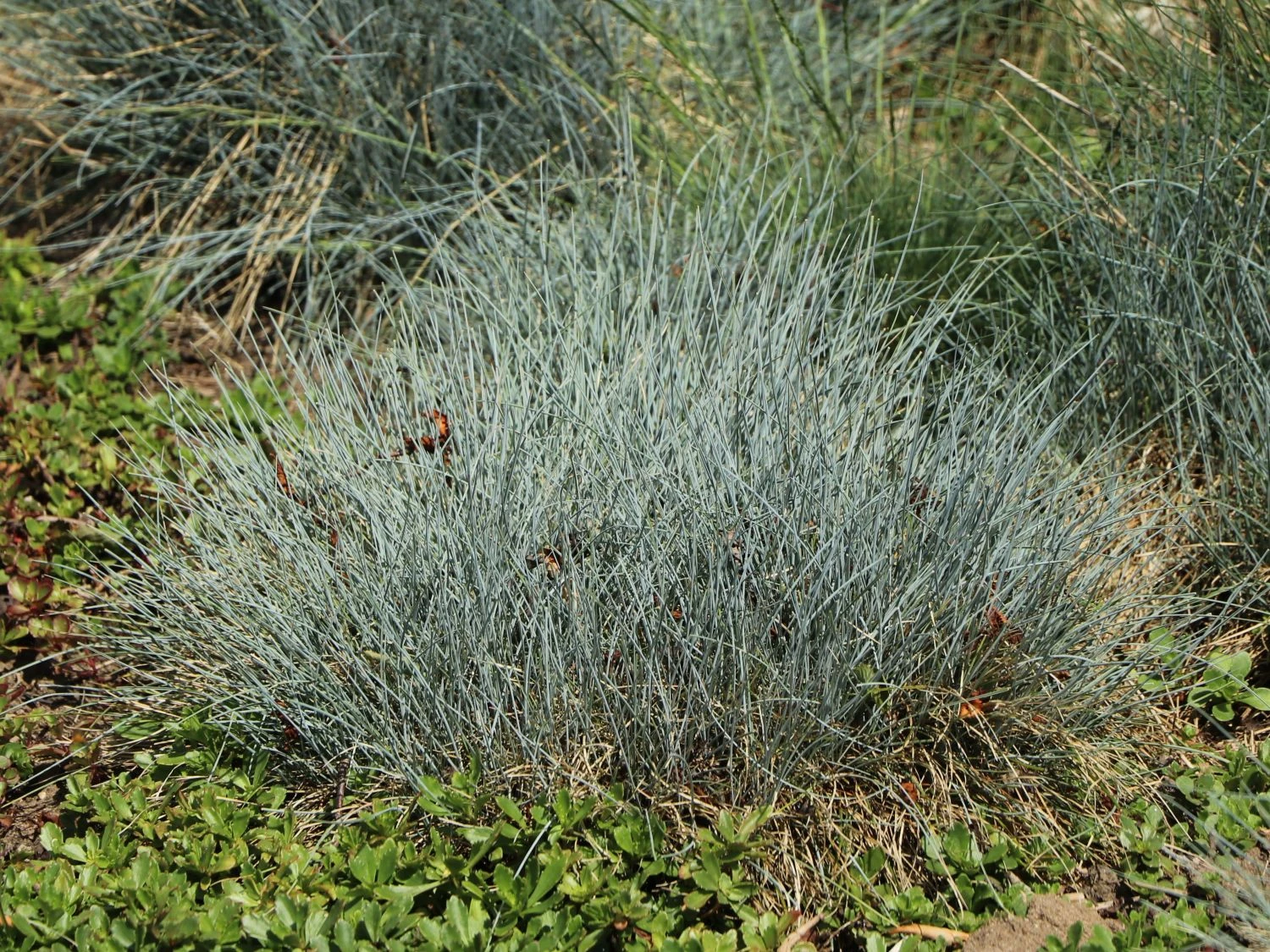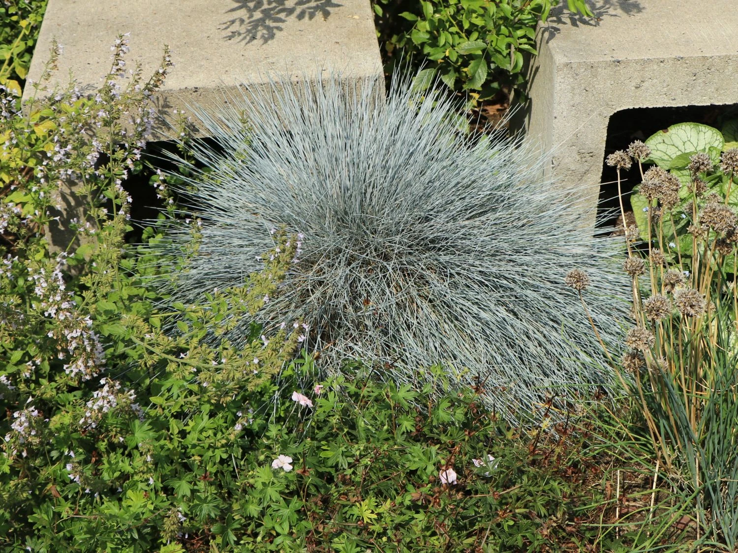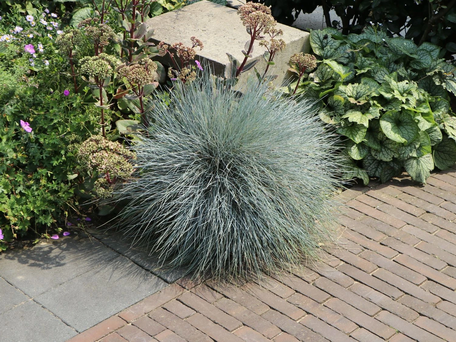 Der Blau-Schwingel ‚Festina‘ stammt aus der Familie der Süßgräser. Er bezaubert den Betrachter mit seiner Art zu wachsen. Dieses niedliche Gras entwickelt lockere, halbkugelige Horste oder niedrig wachsende Polster. Er wuchert nicht in die Breite. Die schmalen Halme und Blattstängel stehen spitz ab. Sie sind grasartig. Im Frühjahr ist die Zeit des Austriebs. In dieser Zeit ist der Blau-Schwingel in einem intensiven Blau gefärbt. In der Folgezeit verblasst diese Farbe leicht. Zwischen Juni und Juli ist die Zeit der Blüte. In diesem Zeitraum bildet Festuca cinerea ‚Festina‘ braun-gelbe Blütenrispen. Das wintergrüne Gewächs behält in der kalten Jahreszeit seine grau-blauen Blätter. Entfernt der Gärtner nach der Blüte die Blütenrispen, fördert er die Farbintensität seiner schönen ‚Festina‘.