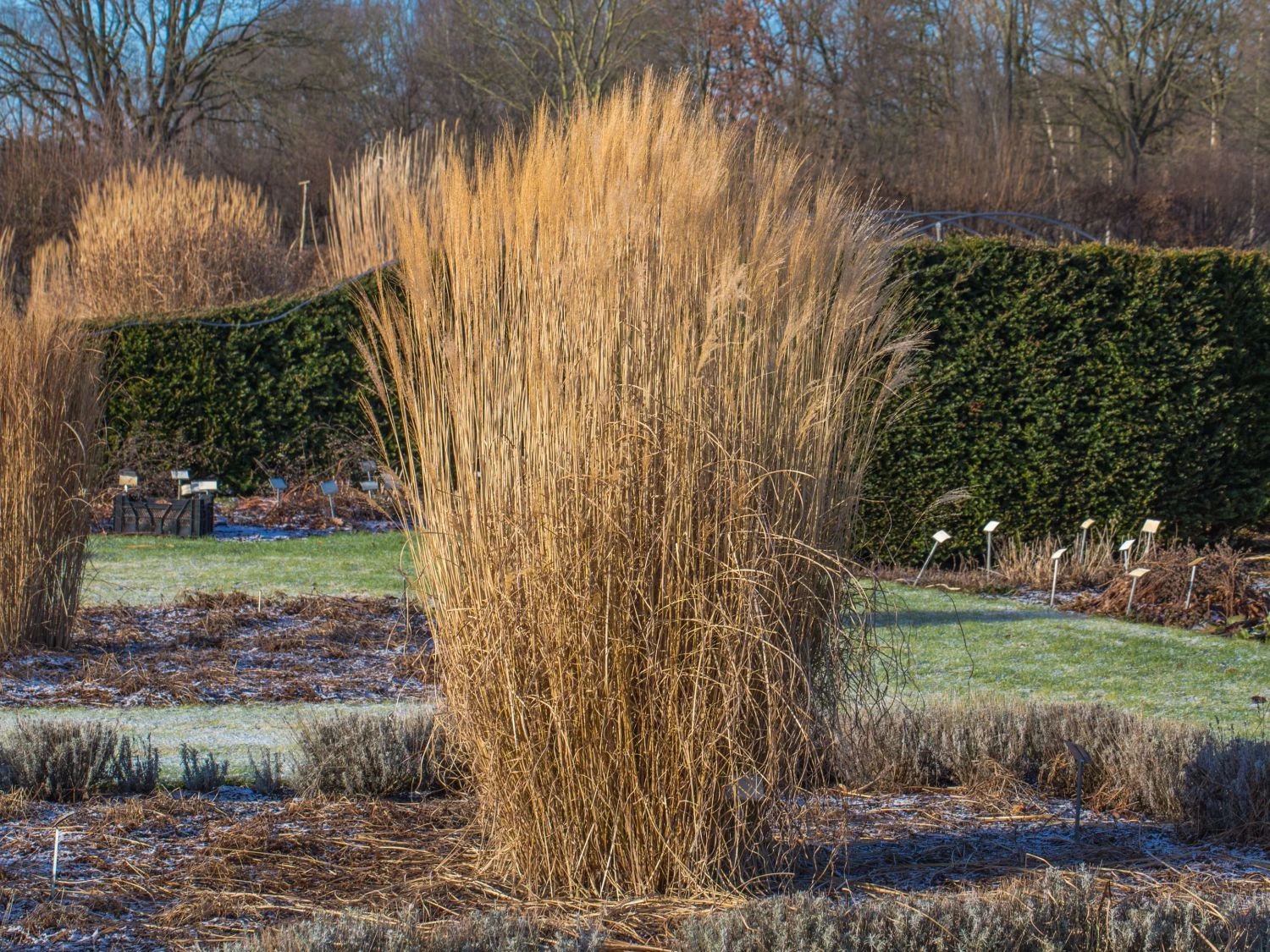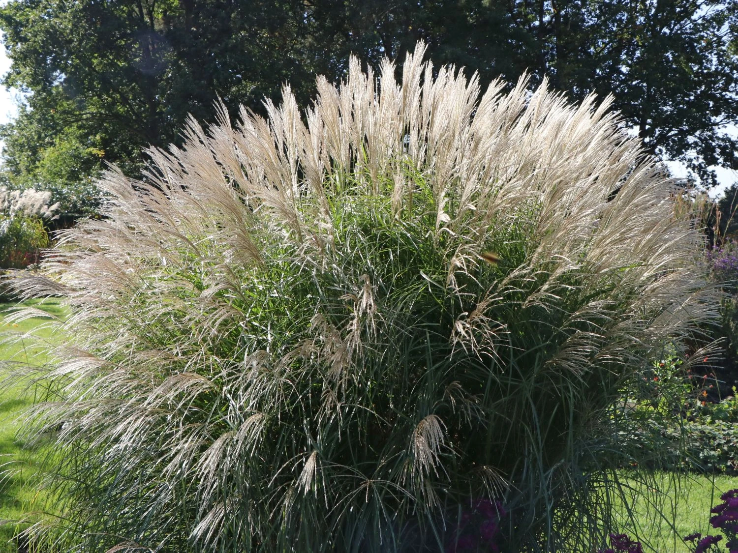 In seltenen Fällen blüht diese auch aber eher doch selten in unserer Region, ansonsten ist diese immer grün und hält sogar noch Frost im Winter aus. Zurückgeschnitten wird diese allerdings nicht im Herbst, sondern erst im Frühjahr. Je nach Standort kann es bis zu 2 Jahren dauern, bis das Chinaschilf ‚Federweißer‘ seine volle Höhe erreicht hat. Die Fortpflanzung geschieht durch Rhizome, die geteilt werden können und dann eine neue Pflanze bilden. Die Wurzeln können bis zu 2,5 Meter in die Erde hineinreichen, und können auch so noch Wasser aus dem Boden erhalten, selbst wenn es dann einmal weniger geregnet hat. Vor allem aber wird das Chinaschilf im Herbst und Winter immer zu einem ganz besonderen Hingucker, denn sie verliert kein Laub. Somit entfällt auch das Laub fegen und selbst in trockenem Zustand sieht sie noch richtig gut aus.