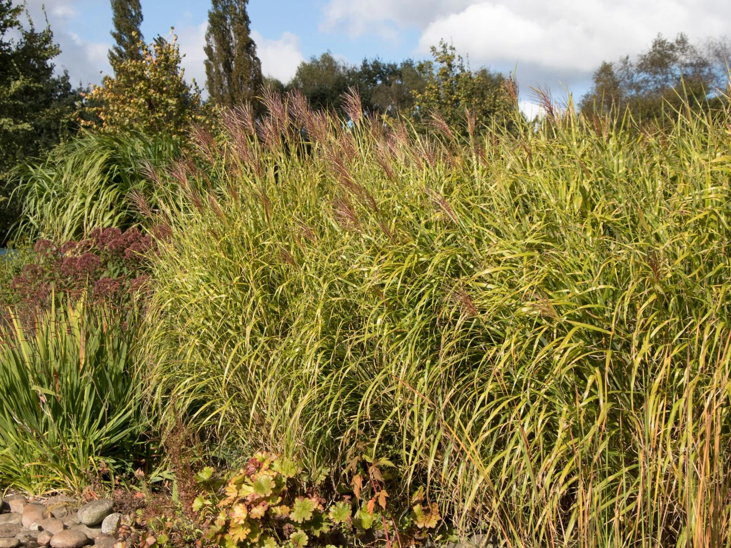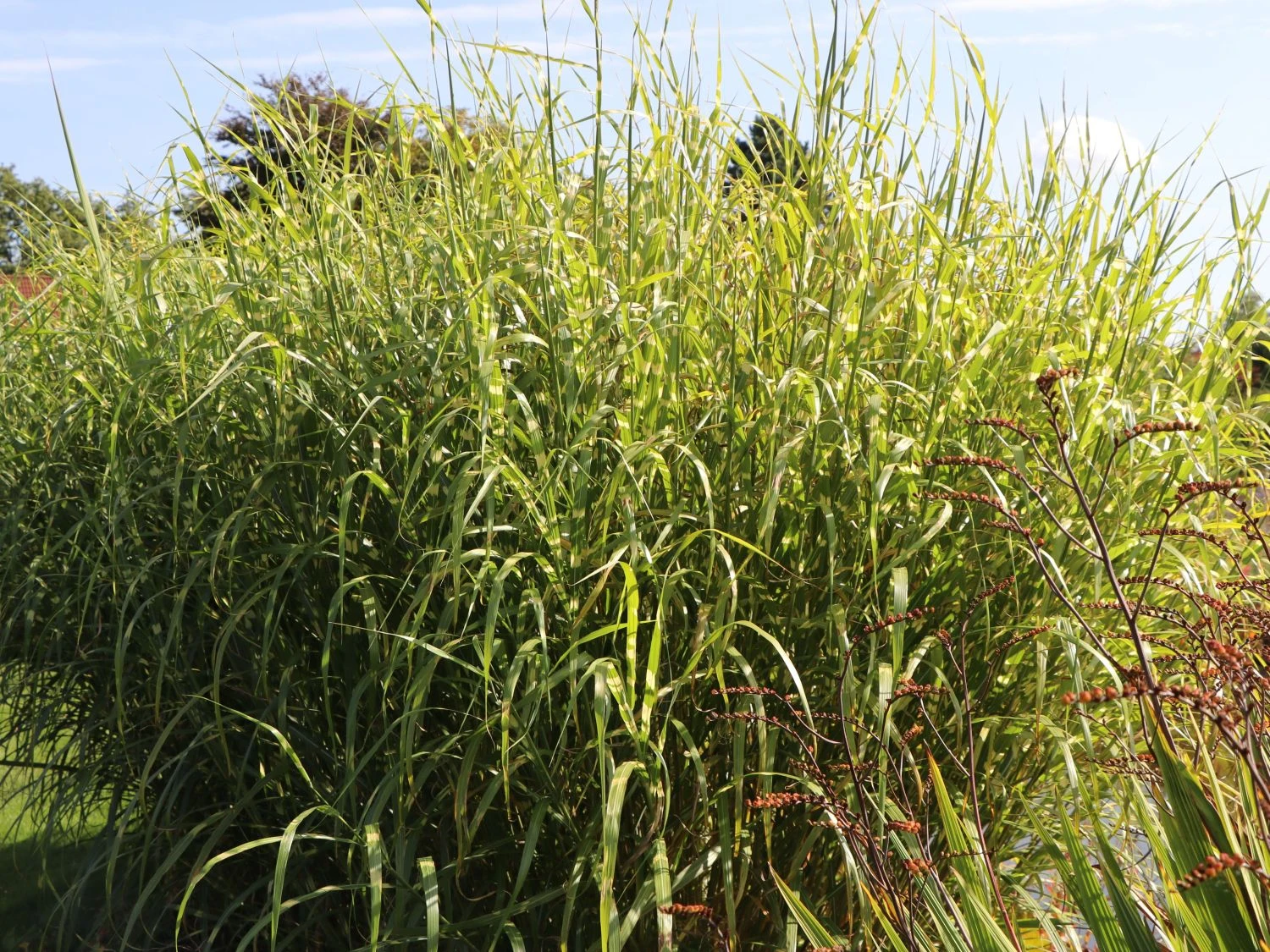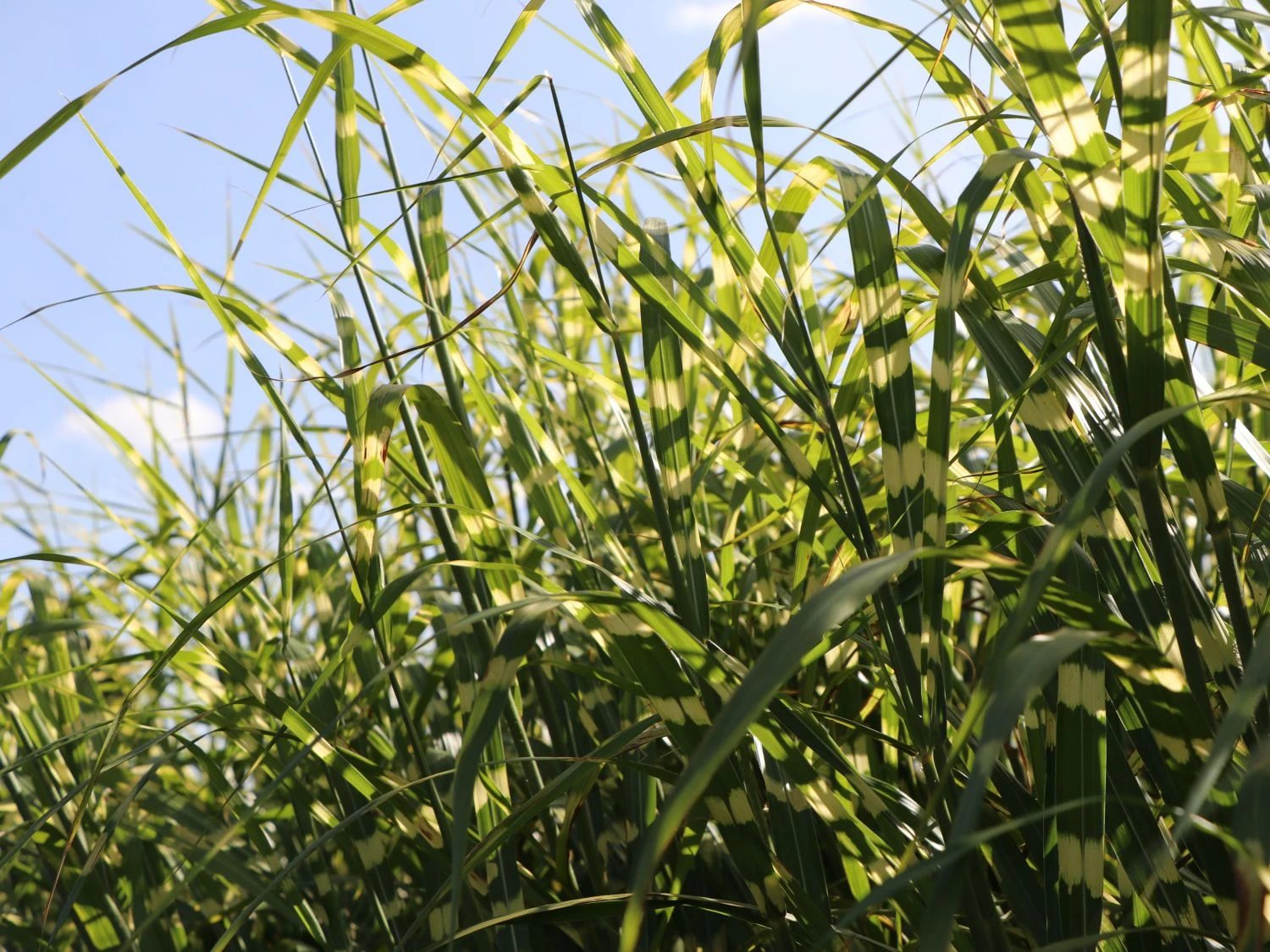 Diese Pflanze macht ihrem Namen alle Ehre. Das Chinaschilf ‚Giraffe‘, unter Botanikern Miscanthus sinensis ‚Giraffe‘ genannt, besitzt viele, ihre Optik einzigartig machende, Eigenschaften. Mit einem aufrechten bis überhängenden Wuchs, der locker und horstbildend erscheint, erreicht das Gras eine imposante Größe von 180 bis zu 250 Zentimetern. Damit zählt sie zu den größeren Vertretern und ist hinsichtlich der Wuchsbreite von bis zu 150 Zentimetern eine überwältige Erscheinung. Mit diesen Eigenschaften eignet sich die Pflanze als idealer Sichtschutz und findet in Einzel- sowohl in Gruppenstellung ihre Verwendung. Jedes einzelne Exemplar benötigt genügend Platz, um sich optimal zu entwickeln. Ist die Wasser- und Nährstoffzufuhr sowie ein optimaler Boden gewährleistet, ist eine Kübelbepflanzung machbar und stellt keine Herausforderung dar. In diesem ziert das Miscanthus sinensis ‚Giraffe‘ gekonnt Terrasse sowie Balkon und verleiht ihnen ein einzigartiges Flair.