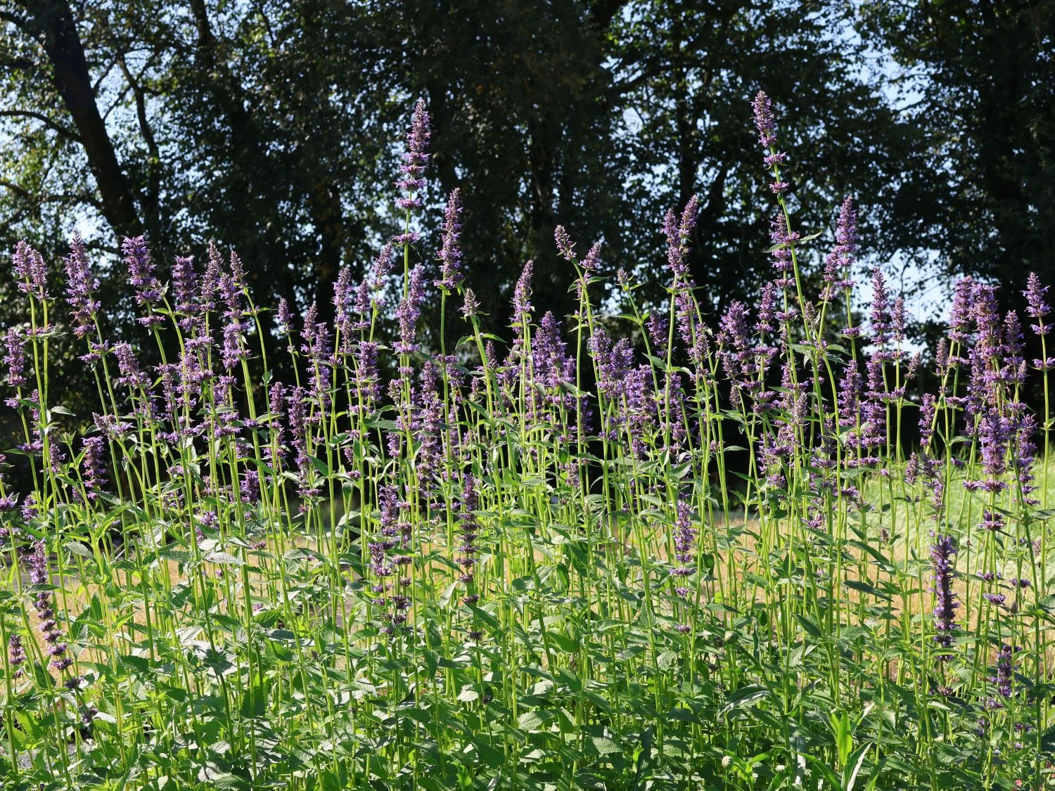 Die Duftnessel ‚Serpentine‘ blüht in wunderschönem Blauviolett und zieht zahlreiche Insekten an. Für Bienen, Hummeln und Falter ist diese Staude während der Blütezeit ein echtes Highlight. Sie erfreuen sich an der spätsommerlichen Nahrungsquelle, denn (bot.) Agastache rugosa ‚Serpentine‘ zeigt ihre lippenförmigen Blüten von Juli bis September. Sie stehen in langen Blütenständen zusammen und machen auf sich aufmerksam. Sobald die erste Blütephase vorüber ist, empfiehlt sich ein Rückschnitt der Blütenstängel. Diese Pflegemaßnahme regt die Pflanze zu einer Nachblüte an. Die Duftnessel ‚Serpentine‘ ist eine hochwüchsige Sorte, die buschig auf eine Höhe von 120 bis 150 cm wächst. Dadurch ist sie eine gute Solitärstaude, die den Mittelpunkt von Beet und Rabatte bildet. In einer Gruppe mehrerer Pflanzen ist das blauviolette Blütenmeer nicht zu übersehen. Der wunderbare Duft von Blatt und Blüten ist mit einem solchen Arrangement intensiv und verwandelt den Garten in ein Paradies frischer Aromen. Gärtnern ist die Pflanze auch unter dem etwas sperrigen Namen Ostasiatischer Riesenysop bekannt.
