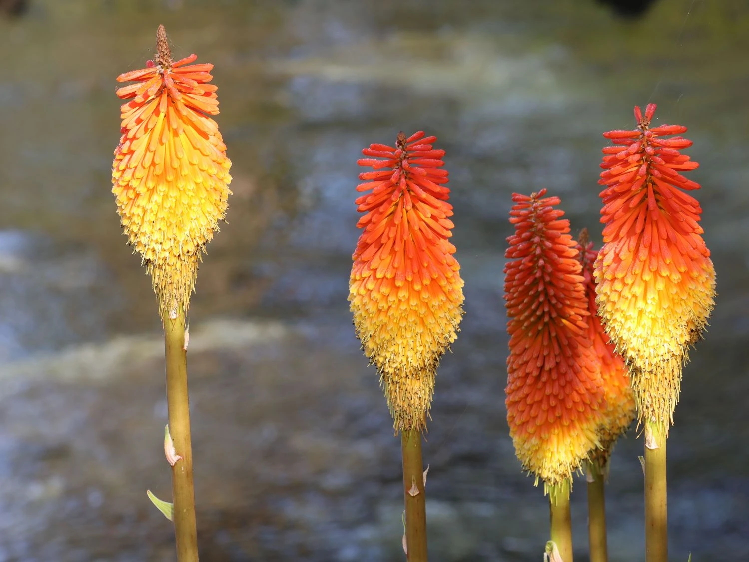 Weite Flächen im Garten verwandelt die Fackellilie ‚Flamenco‘ in ein leuchtendes Farbenmeer. Auf dem Beet und in der Rabatte ist sie eine märchenhafte Zierde, die garantiert das Augenmerk auf sich zieht. Zusammen mit anderen Sorten der Fackellilie setzt sie flammende, vielfarbige Akzente. Ihre Blüten bilden reizvolle Farbkontraste mit blau oder violett blühenden Stauden wie Katzenminze, Rittersporn und Fingerhut. Attraktive Pflanzpartnerschaften geht sie mit Prachtkerze, Knöterich und Sonnenhut ein. In Gesellschaft von Rudbeckia oder Fingerkraut wirkt sie wunderbar zur. Kniphofia uvaria ‚Flamenco‘ passt perfekt zu filigranen Gräsern wie dem Reitgras. Ihre bezaubernden, langen Blütenstängel eignen sich ideal für den Schnitt. Mit ihrer herrlichen Eleganz bereichern sie erlesene Sträußen für besondere Anlässe. Auch in der Vase sind ihre aparten Blüten lange haltbar. An einem sonnigen Standort entfaltet die Fackellilie ‚Flamenco‘ ihr farbenfrohes Spektakel. Sie gedeiht auf normalen, trockenen Gartenböden, die gut durchlässig sind. Zusätzliche Wassergaben benötigt sie in langen regenfreien Perioden. Nach der Blüte schneidet der Gärtner die Blütenstände bis zu den grundständigen Blattschopf ab. Im Winter ist es wichtig das der Standort keine Staunässe zulässt, das schädigt die Staude.