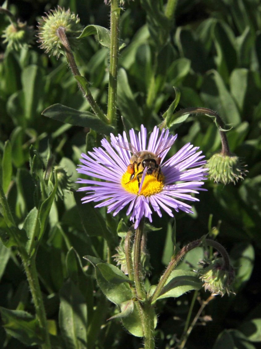 Der Feinstrahl ‚Mrs E.H.Beale‘ erreicht eine Höhe von 30 bis 40 Zentimetern und ziert den vorderen Beetbereich. Diese schöne Sommerstaude blüht ununterbrochen! Sie ist robust und anspruchslos. Ihre lila Blüten thronen auf zierlichen Stängeln und sehen hinreißend aus. Die schmalen lila Kronblätter sind strahlenförmig und säumen das gelbe Blütenkörbchen im Zentrum. Die Blüten erreichen einen Durchmesser von fünf bis zehn Zentimetern und entzücken mit ihrem schönen Anblick. Markant heben sich die dunkelgrünen, oval geformten Laubblätter von den Blüten ab und lassen einen tollen Farbkontrast entstehen.