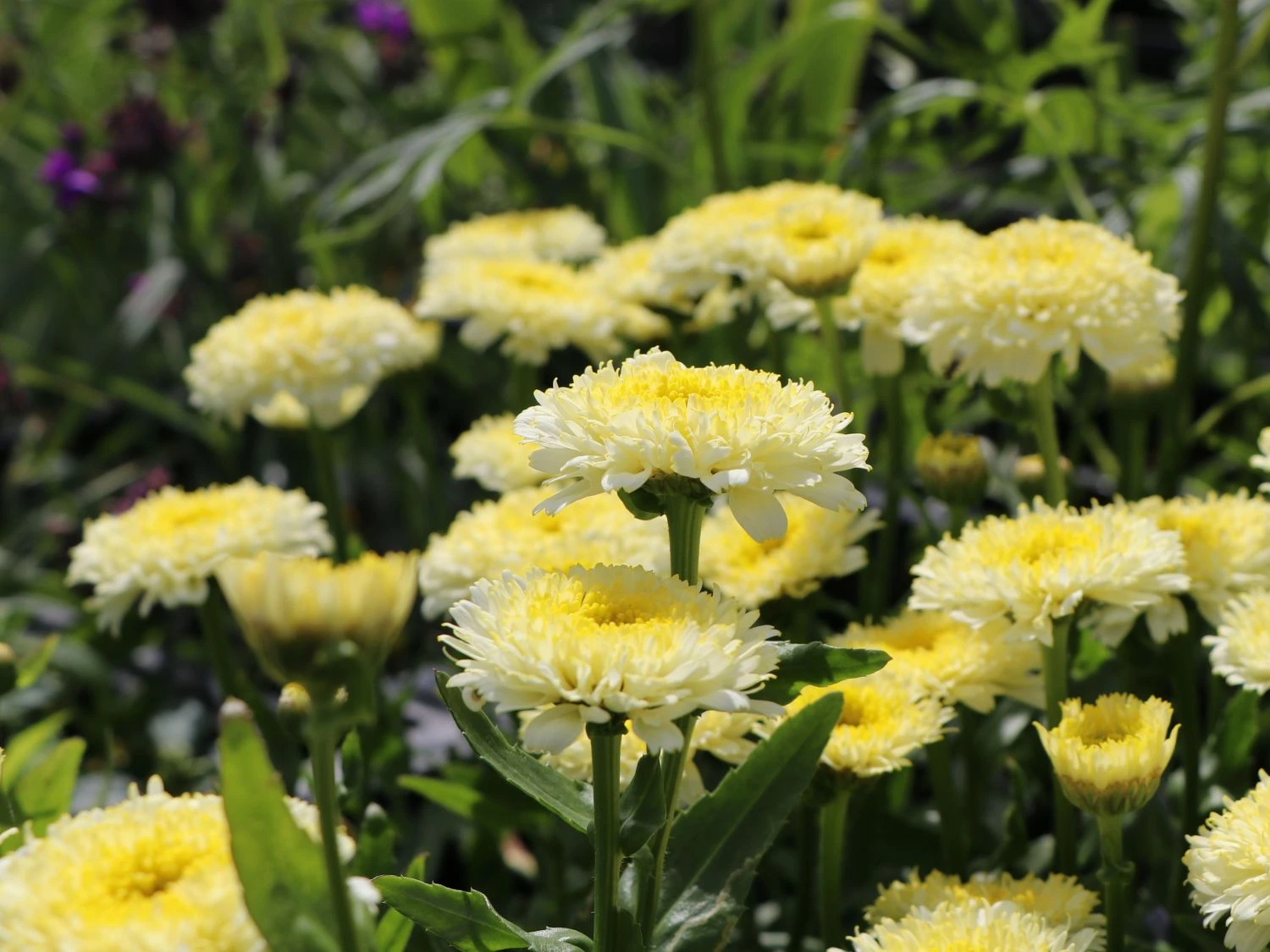 Die Großblumige Margerite ‚Luna‘ ® beeindruckt mit ihrem reichen Flor, den großen Blüten und der langen Blütezeit. Wie kleine Sonnen recken sie ihre zauberhaften Blütenköpfe in den Himmel. Sie sind dicht gefüllt und leuchten in einem zarten Gelb. Am Rand weisen die Blütenblätter der Pflanze eine derart lichte, hauchzarte Farbe auf, dass sie nahezu weiß wirken. Zur Blütenmitte wandelt sich der Farbton zu einem intensiven Goldgelb. Malerisch strahlen die gelben Blüten von (bot.) Leucanthemum x superbum ‚Luna‘ ® aus dem dichten, dunkelgrünen Laub hervor. Die Großblumige Margerite ‚Luna‘ ® begeistert den Gärtner mit Blütenpracht und ihrer winterharten und pflegeleichten Art. Leucanthemum x superbum ‚Luna‘ ® zeichnet sich durch einen buschigen und horstbildenden Wuchs aus, ihre Blütenstängel wachsen schlank und aufrecht. Sie erreicht eine Höhe von 45 bis 60 cm und eine Wuchsbreite von 40 bis 50 cm. Ihre Blütezeit liegt zwischen Juni und August. Setzt der Sommer früh ein, entfaltet die Großblumige Margerite ‚Luna‘ ® ihre ersten Knospen häufiger noch Ende Mai. Die Blüten dieser Leucanthemum sind extrem groß. Sie unterscheiden sich von den übrigen Arten der gleichen Gattung. Denn sie sind dicht mit graziösen Blütenblättern gefüllt. Durch die lichte Farbe des Blütenrandes kommt das kräftige Goldgelb der Blütenmitte wunderbar zum Vorschein. Für Bienen, Hummeln und Schmetterlinge sind die Blüten eine wertvolle Nahrungsquelle. Das attraktive Laub der Großblumigen Margerite ‚Luna‘ ® ist lanzettlich geformt und weist einen gesägten Rand auf. Es zeigt sich bei dieser Pflanze in einem tiefen Dunkelgrün.