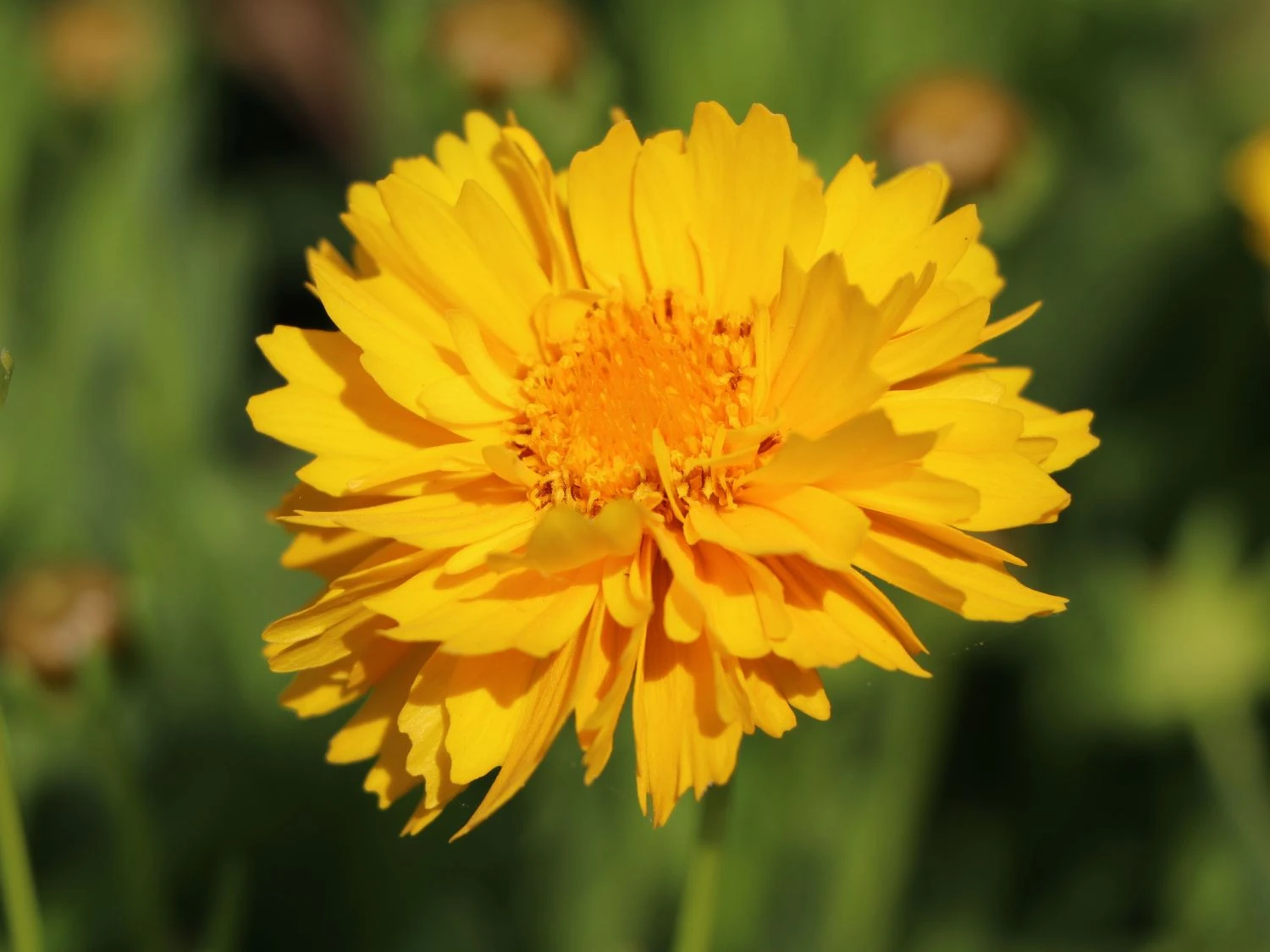 Mit ihrer Leuchtkraft und Blühfreudigkeit ist sie ein Edelstein unter den Staudenpflanzen. Das Großblumige Mädchenauge ‚Early Sunrise‘, botanisch Coreopsis grandiflora ‚Early Sunrise‘ genannt, blüht unermüdlich von Juni bis August. Die halbgefüllten bis gefüllten, rundlichen Blüten erstrahlen in einem leuchtenden, dunklen Gelb, welches selbst aus der Ferne die Aufmerksamkeit auf sich zieht. Der gelbe Glanz, der an edlen Bernstein erinnert, fasziniert jeden Gartenliebhaber.