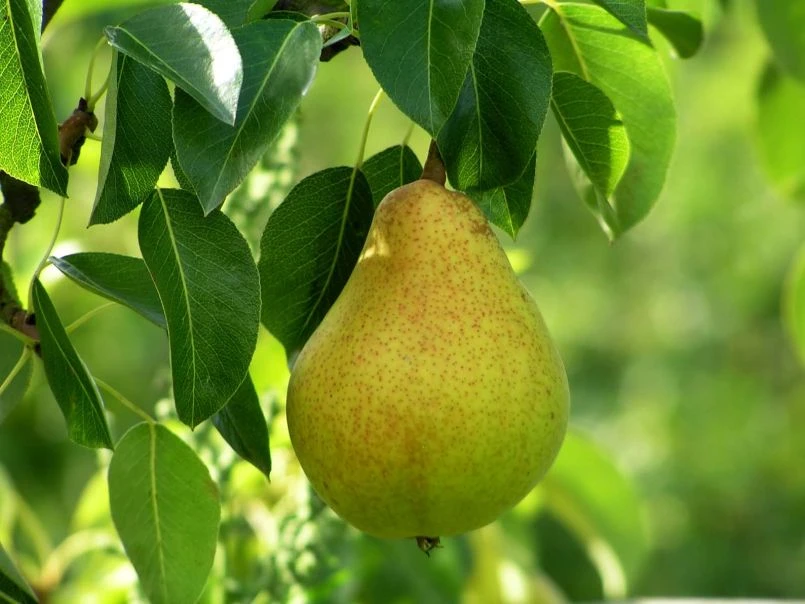Die Herbstbirne ‚Schweizer Wasserbirne‘, ‚Kugelbirne‘ mittel ist mit ihrem dichten, buschigen Wuchs ein schöner Anblick. Im zeitigen Frühjahr zeigt sie ihre Blattknospen. Die weißen Blütenbüschel entfalten sich zwischen Mitte April und Mitte Mai. Kleine, feste, grasgrüne Birnen zieren die Äste im Sommer und entwickeln sich zu mittelgroßen bis großen Früchten. Die Birnen von (bot.) Pyrus communis ‚Schweizer Wasserbirne‘ / ‚Kugelbirne‘ behalten ihre grüne Schale und überziehen sic ab August mit einer blauroten, verwaschenen Tönung. Ab Mitte September sind die Früchte saftig, bissfest und pflückreif. Ihr mildes, leicht säuerliches und mit dezenter Süße abgerundetes Aroma entwickeln sie während der Lagerung. Ein feiner Duft verströmen die Früchte der Herbstbirne ‚Schweizer Wasserbirne‘, ‚Kugelbirne‘ mittel im Oktober und November. Sie sind ein schönes Tafelobst, eignen sich für verschiedene Speisen und Desserts und sind ein Dörrobst mit unverwechselbarem Aroma. Pyrus communis ‚Schweizer Wasserbirne‘ / ‚Kugelbirne‘ ist eine beliebte und begehrte Mostbirne.