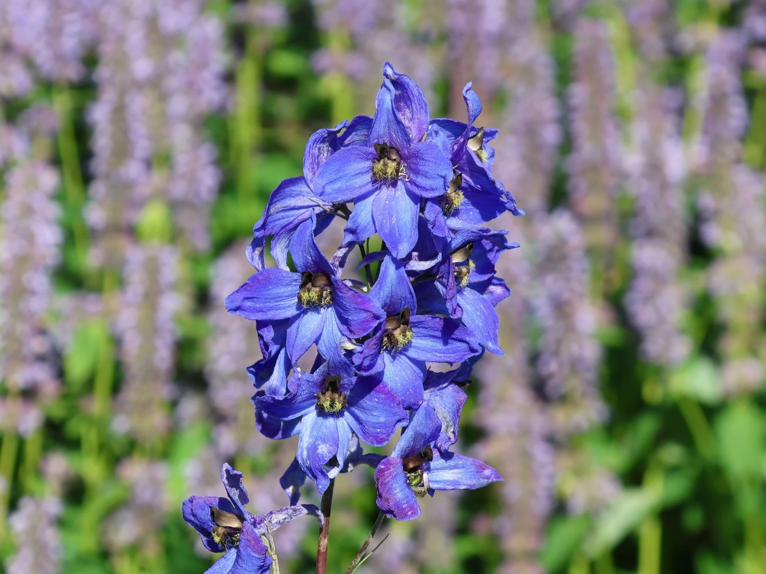 [p]Die besten Wuchs- und Blüheigenschaften weist Delphinium x elatum ‚Finsteraarhorn‘ an windgeschützten und in der vollen Sonne liegenden Standorten auf. Am Fuß des Hohen Rittersporns ‚Finsteraarhorn‘ ist Schatten von Vorteil. Als gute Schattenspender eignen sich Salbei, Ehrenpreis und Frauenmantel. Diese Blühstaude bevorzugt durchlässige, humusreiche, frische, tiefgründige und neutrale Böden. Der Wasserbedarf des Hohen Rittersporns ‚Finsteraarhorn‘ ist hoch. Da Rittersporn zu den Starkzehrern gehört, ist der Bedarf an Nährstoffen hoch. Der jährliche Schnitt ist ein wichtiger Teil der Pflege von Hoher Rittersporn ‚Finsteraarhorn‘. Der erste Schnitt erfolgt nach der Hauptblüte. Der Gärtner kürzt den oberen Bereich auf bis auf einen Meter über dem Boden zurück. Das hat in der Regel eine Nachblüte im Herbst zur Folge, an die sich ein bodennaher Rückschnitt anschließt. Der Hohe Rittersporn Delphinium x elatum ‚Finsteraarhorn‘ ist bis -28° C winterhart. Durch unsere Winter kommt er ohne jeglichen Winterschutz. Lediglich im Topf oder Kübel ist die Pflanze empfindlicher gegen Kälte. [/p]Hoher Rittersporn ‚Finsteraarhorn‘