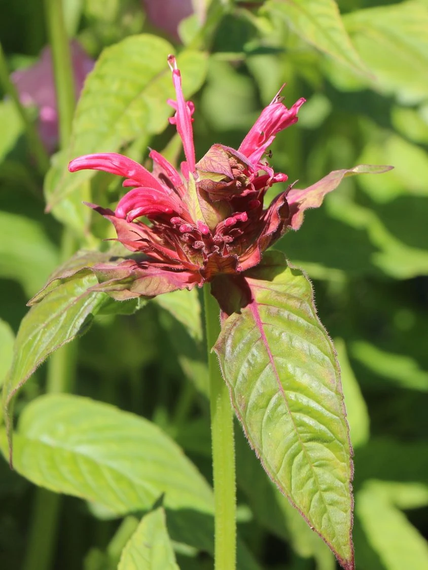 Die einzelne Blüte setzt sich aus zahlreichen lippenartigen und farbintensiven Einzelblüten zusammen. Dabei stehen die Staubblätter leicht nach oben. Den idealen Landeplatz für bestäubende Insekten bieten die unteren Kronenblütenblätter, die nach außen gewölbt sind. Aus den Blattachseln werden bis Mitte August weitere Blüten gebildet. So steht diese Indianernessel über Wochen in voller Blüte und erfreut Auge und Nase zugleich. Auch in der Vase halten die Blüten mehrere Tage und bringen den lieblichen Duft in die eigenen vier Wände. Mehrere Blüten können dabei zum großen Sommerstrauß gebunden werden.