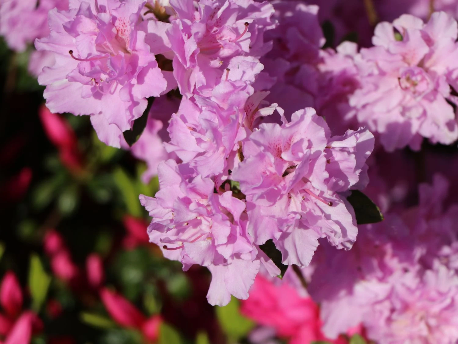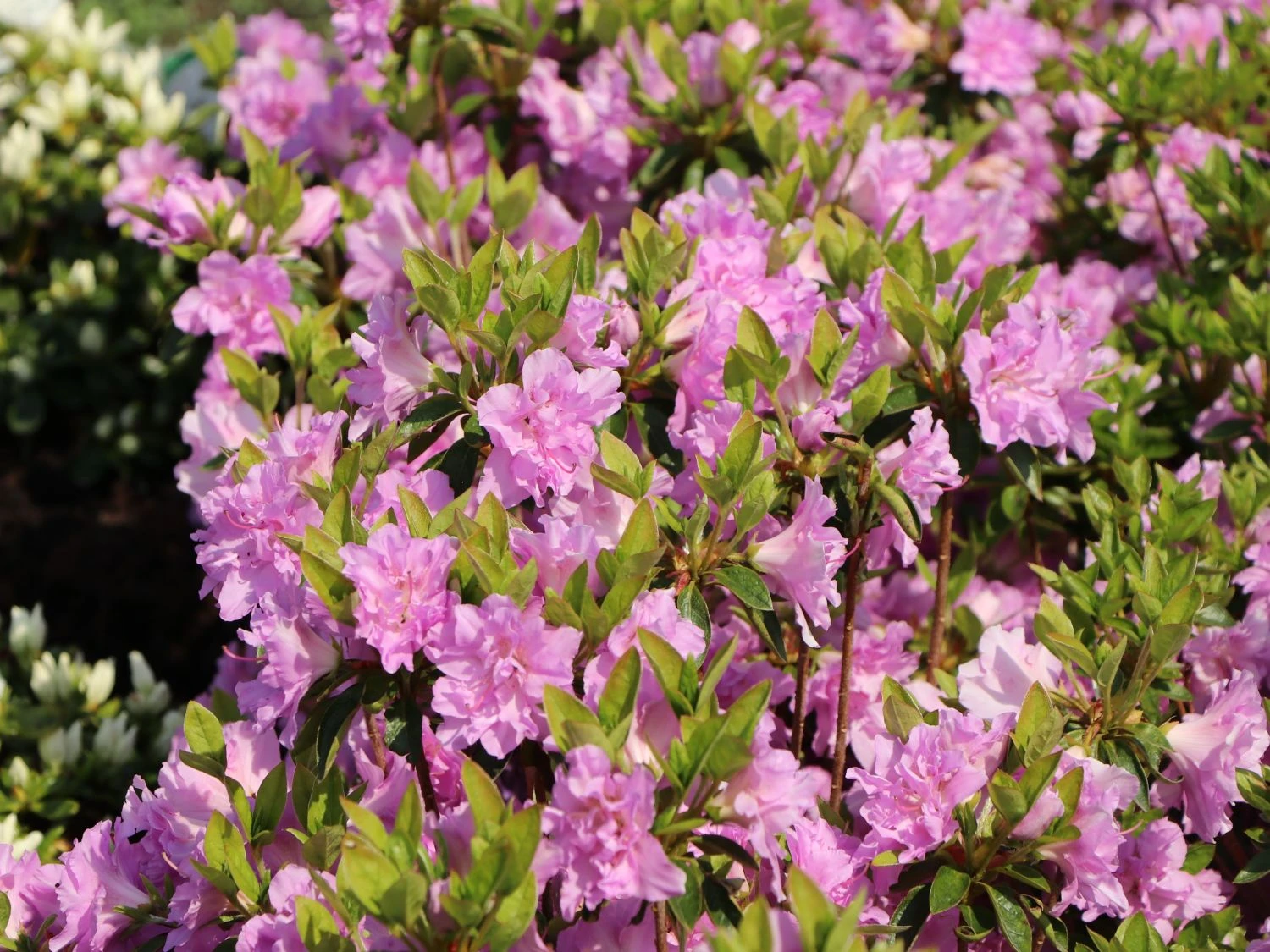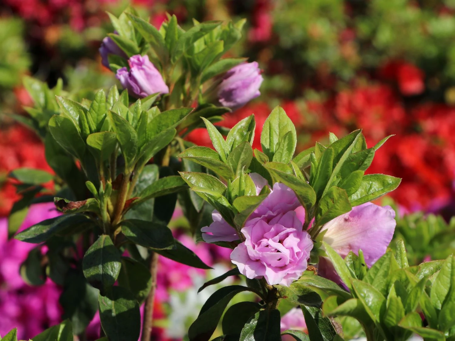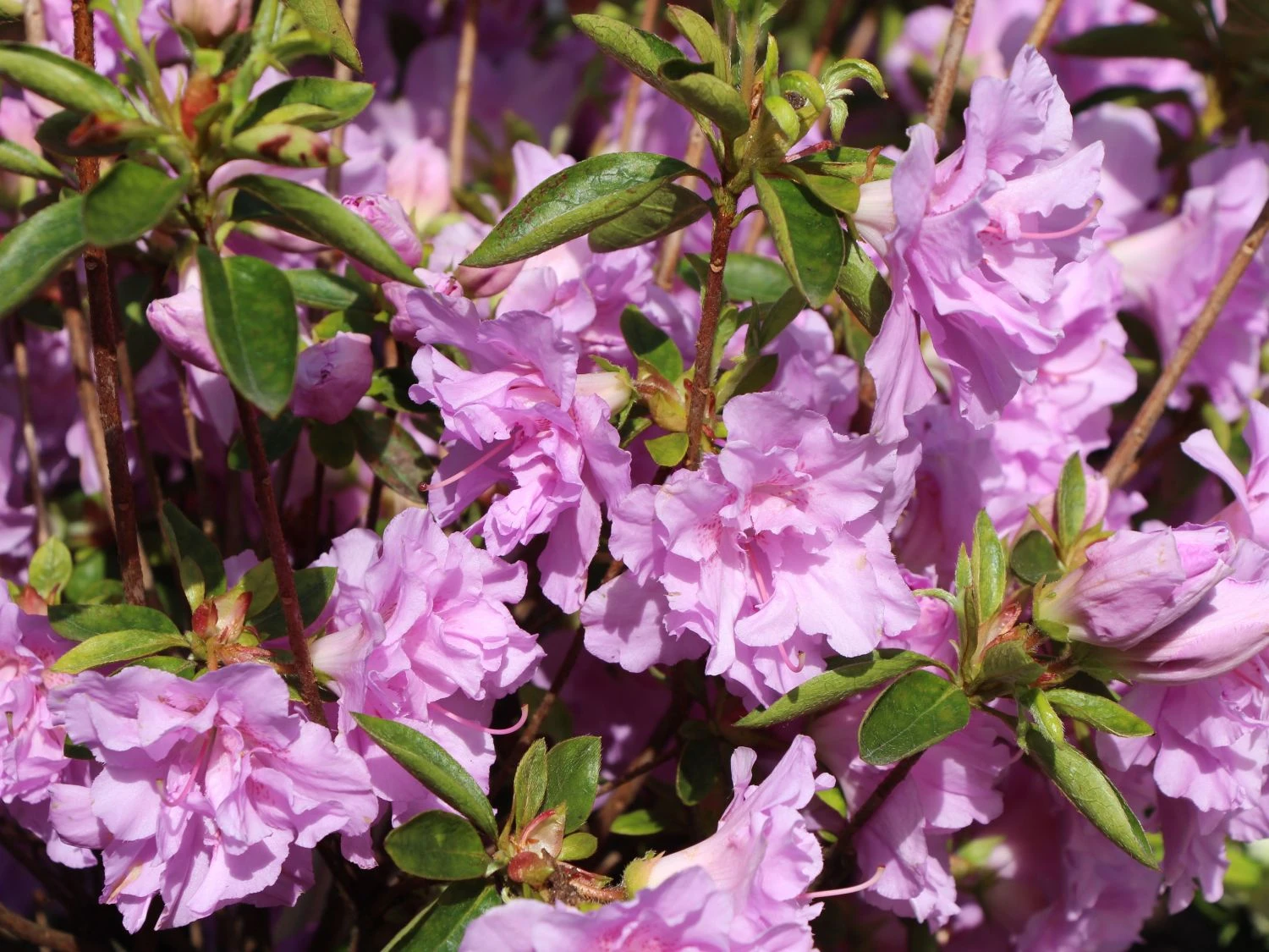 Japanische Azalee ‚Elsie Lee‘ – Ihre satt gefüllten hell-lila Blüten verdankt diese Azalee der Tatsache, dass sich sämtliche Staubblätter in Blütenblätter verwandelt haben. Die Säume sind gekraust und gewellt, im Innern der Blüte wartet eine purpurfarbene Zeichnung darauf, entdeckt zu werden.