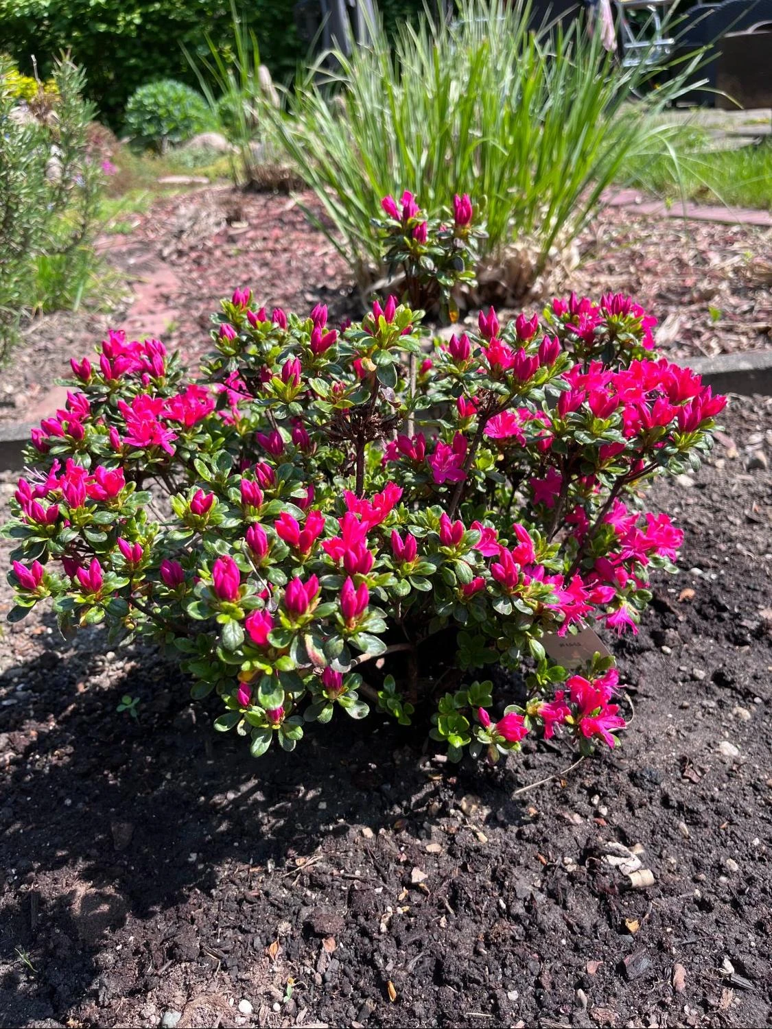 Dieser wintergrüne Zwergstrauch überrascht den Gartenbesucher Ende Mai mit einem verschwenderisch anmutenden Blütenteppich. Die Japanische Azalee ‚Kermesina‘ bezaubert mit ihren unzähligen Blüten, die sie zwischen dem 23. Mai und dem 8. Juni zum Vorschein bringt. Es gibt Gärtner, die diese Blütezeit wie ein Fest zelebrieren und Besucher in ihren Garten einladen. Das leuchtende Blütenmeer von (bot.) Rhododendron obtusum ‚Kermesina‘ ein umwerfender Anblick! Es wird durch den engen Zeitkorridor von circa zwei Wochen zu einem saisonalen Ereignis.