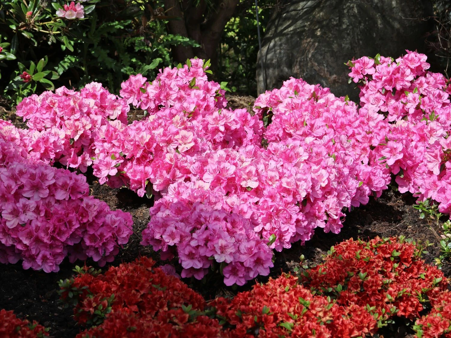 Rhododendron obtusum ‚Pink for Help‘ ® findet nahezu an jedem halbschattigen bis schattigen Standort einen Platz, wobei er sich als Flachwurzler optimal als Gehölz unter tiefwurzelnde Bäume und vor Hecken anbietet. Durch das knallige Pink der Blüten versprüht der Kleinstrauch ein sommerliches Flair und füllt Orte mit Farbe, wo nur wenige Blühpflanzen gedeihen. Zudem überzeugt die Japanische Azalee ‚Pink for Help‘ ® dort durch ihre kompakte Wuchsform und geringe Wuchshöhe, wo wenig Platz vorhanden ist. Somit passt sie gleichermaßen in die große Gartenanlage sowie auf kleine Terrassen und Balkone. Eine zierende Kombination ist mit anderen asiatischen Gewächsen wie beispielsweise mit der Glanzmispel und der japanischen Fruchtskimmie zu erreichen. Mit diesen kommt der Kleinstrauch hervorragend zur Geltung, wenngleich er sich auch inmitten von Rosen- und Staudenbeeten wohlfühlt. Als Solitär lässt sich die Japanische Azalee ‚Pink for Help‘ ® optimal als Farbtupfer in jeden Gestaltungsstil integrieren und zusammen mit Artgenossen als Eingrenzung oder Umrandung von Beeten, Wegen oder Terrassen pflanzen. Durch die gute Winterhärte von bis zu -22°C, kann diese immergrüne Azalee selbst in rauen Winterregionen im Freien überwintern. Zusammengefasst handelt es sich bei der japanischen Azalee ‚Pink for Help‘ ® und ein außerordentlich genügsames Exemplar, das Gärten, Terrassen und Balkone mit einer beeindruckenden Farbe sowie Lebendigkeit durch unzählige Blüten füllt. Kaum ein anderer Kleinstrauch versprüht diesen positiven Ausdruck und löst ein intensives Sommer-Feeling aus, wie die Japanische Azalee ‚Pink for Help‘ ®.