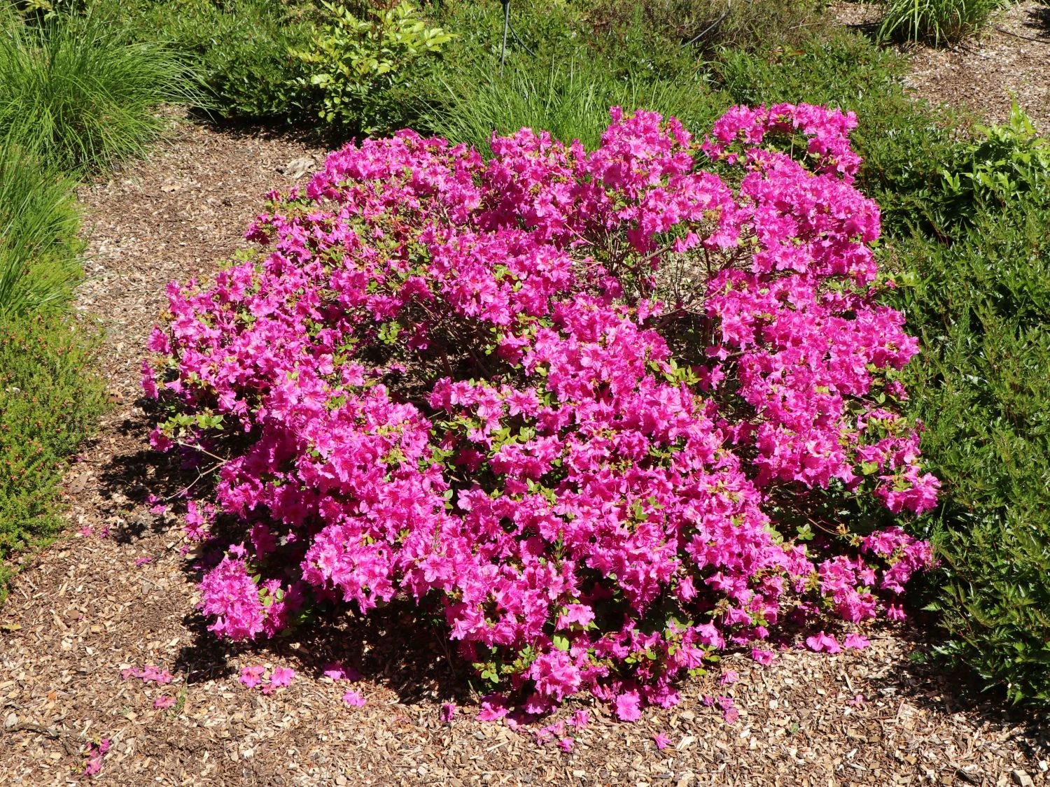 Die Japanische Azalee ‚Purpurtraum‘ ist eine kleine, dicht kompakte und wintergrüne Pflanze. Sie erreicht eine Höhe von ca. 60 cm und einer Breite von ca. 80 cm.