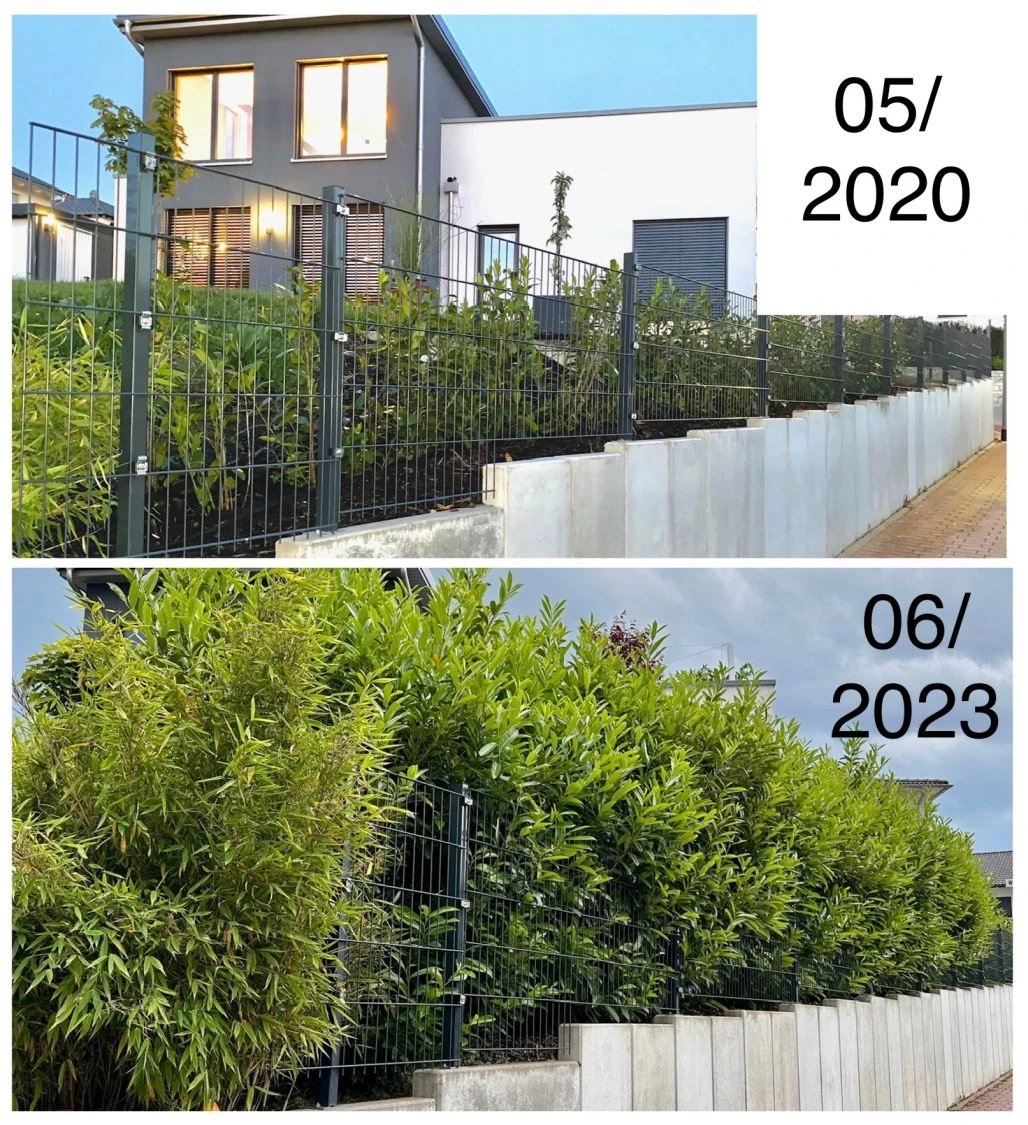 Kirschlorbeer ‚Caucasica‘ ist die ideale Heckenpflanze: Wuchskräftig, sowie robust und dicht aber nicht ungezügelt, sodass er seinem Besitzer buchstäblich über den Kopf wachsen würde. An guten Standorten kann die ‚Caucasica‘ eine Höhe von 3 Metern und mehr erreichen und einen blickdichten, hohen Sichtschutz bilden. Es ist allerdings zu bedenken, ob diese Höhe für den Schnitt der Hecke noch praktikabel ist. Heckenschnitt über Kopf ist Schwerstarbeit und überdies gefährlich, denn ohne akrobatische Kunststücke auf einer Leiter ist hier nichts auszurichten. Wer sich nicht übermäßig anstrengen will, hält die Kaukasische Kirschlorbeere auf einer Höhe von 1 bis 2 Metern. Höhen über 2 Meter können evtl. ein Fall für den Profi-Gärtner sein. Für den Schnitt empfiehlt sich eine manuelle Heckenschere, die gezielt angesetzt werden kann und die dekorativen schönen Blätter der Pflanze nicht verletzen.