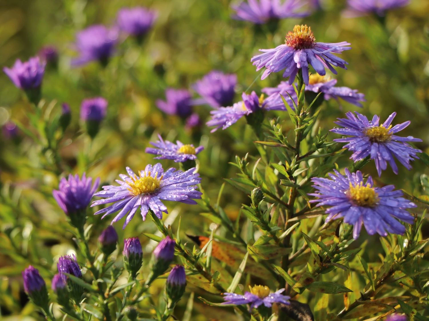 Schöner kissenartiger Wuchs mit bezaubernden Strahlenblüten. ‚Anton Kippenberg‘ zeigt ihre schöne Blütenpracht mit einer leuchtend violettblauen bis violetten Blüte und einer gelben Blütenmitte. Es wirkt als strecken diese neugierig ihre Köpfe der Sonne entgegen. Das grüne, glatte Laub bildet einen äußerst hübschen Kontrast zur Blüte und hat eine lanzettliche Form. Die Pflanze ist rhizombildend und bedeckt schnell jeden kahlen Erdfleck im Blumenbeet. Es entsteht ein hinreißendes Blumenmeer, welches nach Bewunderung strebt. In sonniger Lage fühlt sich die Aster dumosus ‚Prof. Anton Kippenberg‘ am wohlsten. Ein frischer, durchlässiger, nährstoffreicher Boden versorgt die Schönheit optimal und bringt auch die letzte Knospe zum Blühen. Die Kissen-Aster ‚Prof. Anton Kippenberg‘ ist eine gesunde und wuchsige Sorte.