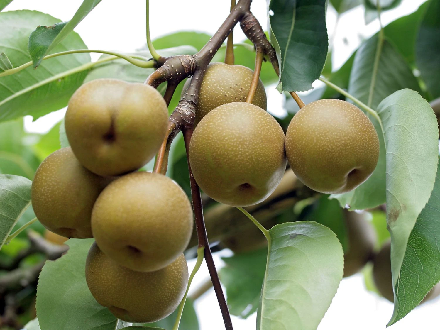 Ihr Name bedeutet in der Übersetzung “wohltuendes Wasser“. Mit ihren weißen Blüten, den bronzefarbenen Früchten und dem herrlichen Duft, ist diese Pflanze eine wunderbare Bereicherung des heimischen Gartens. Sie ist eine mehr als passende Alternative zu den klassischen Birnensorten. Die (bot.) Pyrus pyrifolia ‚Kosui‘ liefert exotische Früchte, die herrlich frisch, saftig, süß und unglaublich erfrischend sind. In ihrer Form ähnelt sie dem klassischen Apfel, im Geschmack entspricht sie einer Birne. Deshalb ist sie landläufig als Apfelbirne bekannt. Auch in deutschen Gärten fühlt sich die Nashi Birne ‚Kosui‘ ausgesprochen heimisch. Bereits ab dem zweiten Lebensjahr darf sich der Gärtner an den ersten ausreifenden Früchten erfreuen. Ab Mitte September sind die erfrischenden Früchte erntereif. Sie schmecken sowohl als Naschfrucht direkt vom Baum als auch – bei kühler Lagerung – über mehrere Wochen hinweg. In der Verarbeitung ist diese exotische und köstliche Frucht wie die klassische Birne zu handhaben. So lassen sich die schmackhaftesten Marmeladen, Säfte oder Kuchen mit der Nashi Birne ‚Kosui‘ zaubern. Diese schöne Pflanze überzeugt durch Pflegeleichtigkeit, Winterhärte und Widerstandsfähigkeit. Dank ihrer Größe eignet sie sich für kleine und für große Gärten. Auch im Pflanzkübel auf dem Balkon ist sie eine sehenswerte und kulinarische Bereicherung.