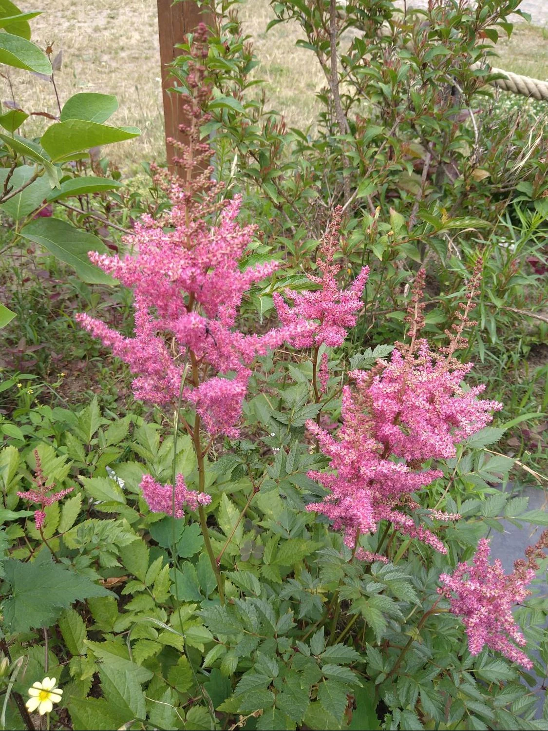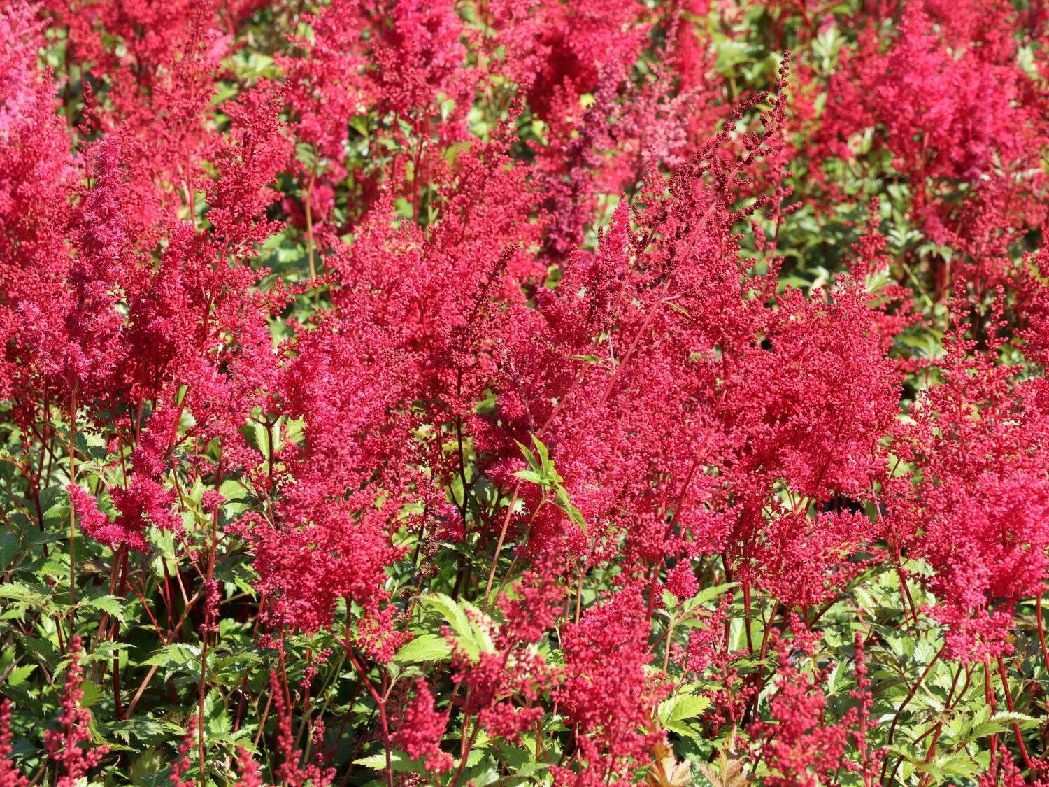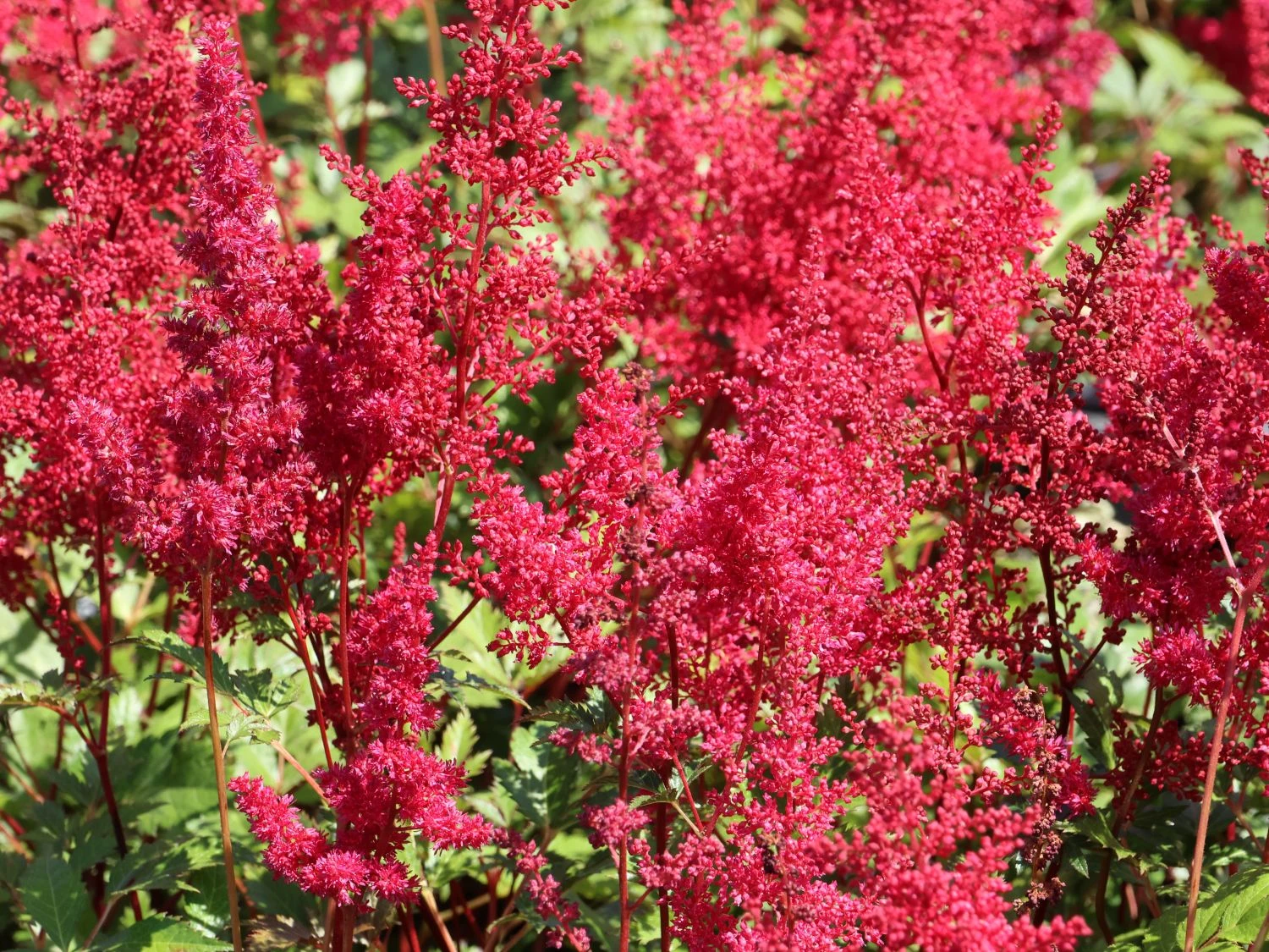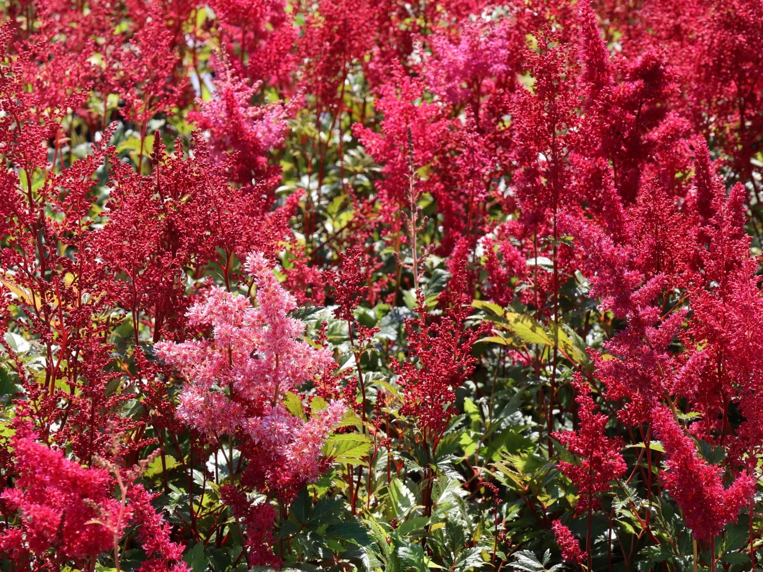 Manche Bereiche im Garten entwickeln sich für den Gärtner zu einer leichten, kreativen Herausforderung. Dazu zählen vor allem die Flächen, wo wenig Sonne hingelangt. Zum Norden ausgerichtete Hauseingänge und die schwieriger zu gestaltenden Flächen unter größeren Gehölzen oder Bäumen inspirieren zu neuen Ideen mit kontrastreichen Bepflanzungen. Die Prachtspiere ‚Red Sentinel‘ kommt mit kargen Lichtbedingungen mühelos zurecht. Die Pflanze vereint in sich eine Vielfalt von Farbe und Form. Das tiefe Rot der kleinen Blüten entwickelt sich durch die in Rispen angeordnete Form zu einem liebevollen Blickfang. Damit korrespondiert das kräftige Grün, der fiderartig zusammengesetzten Blätter hervorragend. Durch diese Lebendigkeit bringt die Astilbe japonica ‚Red Sentinel‘ Vitalität in dunklere und stille Bereiche. Dabei lässt sie sich überaus gut mit anderen Pflanzen kombinieren. Weitere Astilben in anderen Farben und Wuchshöhen versprechen ein faszinierendes Arrangement. Besondere farbliche Akzente lassen sich in der Kombination mit Farnen, Funkien oder Frauenmantel erzielen.