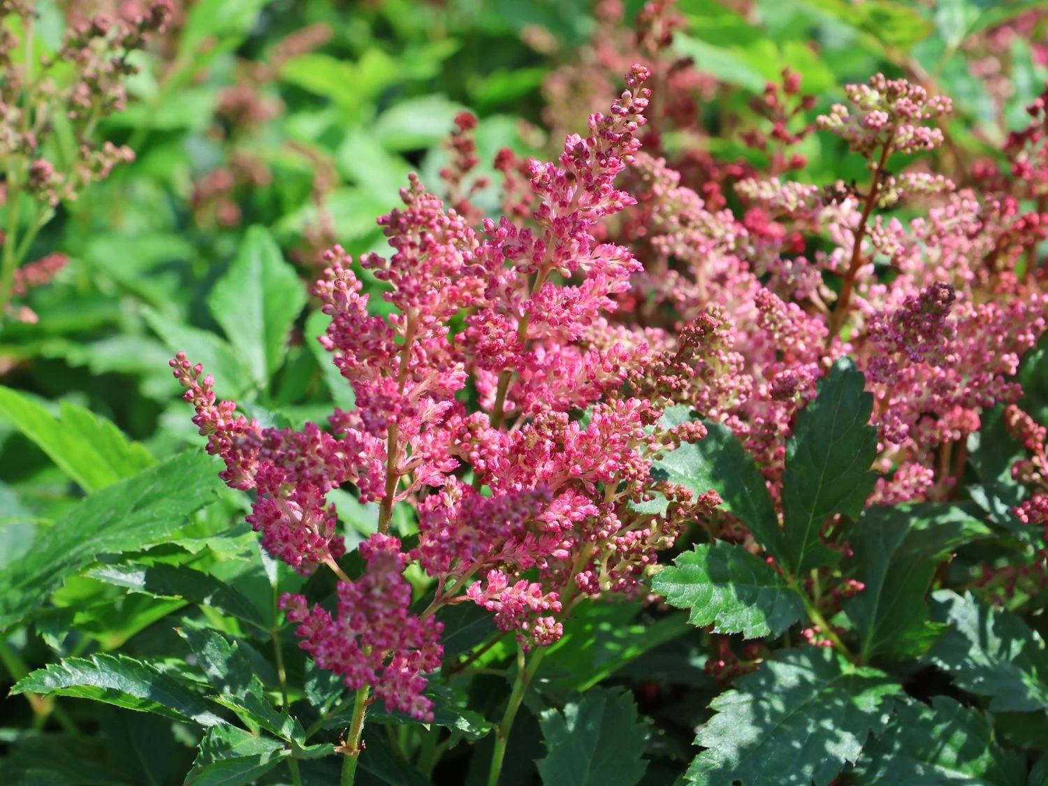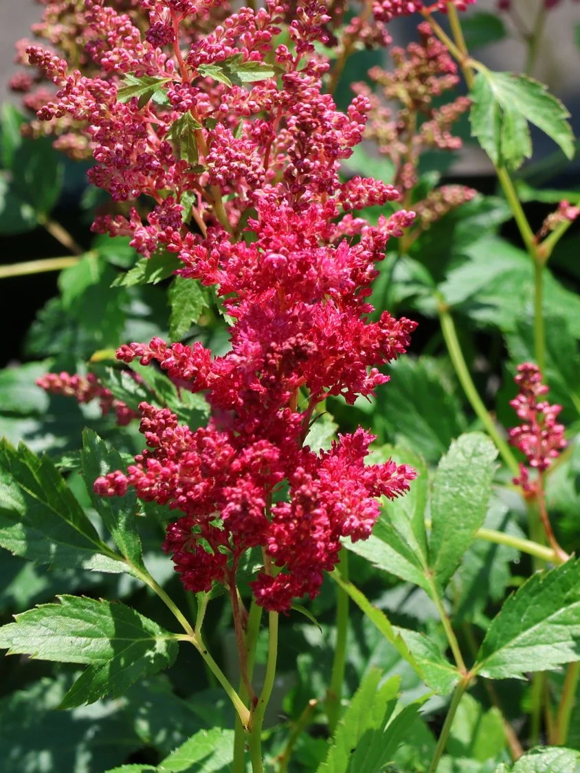 Die Prachtspiere ‚Younique ® Fireberry‘ trägt in den Sommermonaten von Juni bis August ihre schönen Blüten. Die vielen kleinen Einzelblüten ordnen sich zu Rispen an und verbreiten ihren angenehmen Duft. Astilbe japonica ‚Younique ® Fireberry‘ hat einen normalen Wasserbedarf. Die Staude ist zudem gut winterhart und benötigt für die kalte Jahreszeit keinen besonderen Schutz vor starken Frösten. In der Verwendung bietet sich die Staude für vielerlei schöne Kreationen an. Die Prachtspiere ‚Younique ® Fireberry‘ ist eine beliebte Pflanze im halbschattigen Staudenbeet, sie glänzt sowohl alleine als auch in einer größeren Gruppe ihresgleichen. Ebenso lässt sie ihren zauberhaften Charme im Stein- oder Bauerngarten spielen. Im Kübel kultiviert, bereichert sie Balkone und Terrassen mit ihrer unnachahmlichen Präsenz und ihrem zarten Blütenduft. Um die Wuchs- und Blühkraft für viele Jahre zu erhalten, empfiehlt es sich, die Pflanze alle 2 bis 3 Jahre zu teilen und auf diese Weise zu verjüngen.