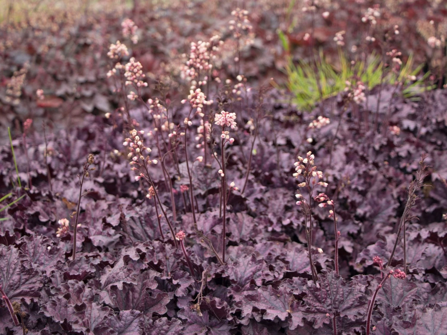 Das Purpurglöckchen ‚Forever Purple‘ blüht von April bis August. In dieser Zeit zeigen sich seine feinen Blüten. Sie stehen an langen, filigran wirkenden Blütenstielen und bewegen sich wie Glöckchen im Wind. Die Blüten ziehen Bienen, Hummeln und andere Insekten magisch an. Die wintergrüne Staude wächst horstbildend auf bis zu 35 Zentimeter. Während der Blütezeit erreicht sie eine Höhe von rund 45 Zentimetern. ‚Forever Purple‘ bevorzugt einen sonnigen bis halbschattigen Standort und einen nährstoffreichen, frischen und durchlässigen Gartenboden. Aus der Ferne betrachtet, wirkt Heuchera x cultorum ‚Forever Purple‘ in kleinen Gruppen zu drei bis fünf Pflanzen am besten. Maximal passen rund zwölf Exemplare auf einen Quadratmeter. Der Pflanzabstand unterschreitet 30 Zentimeter idealerweise nicht, damit sich jede Pflanze gut entwickelt.