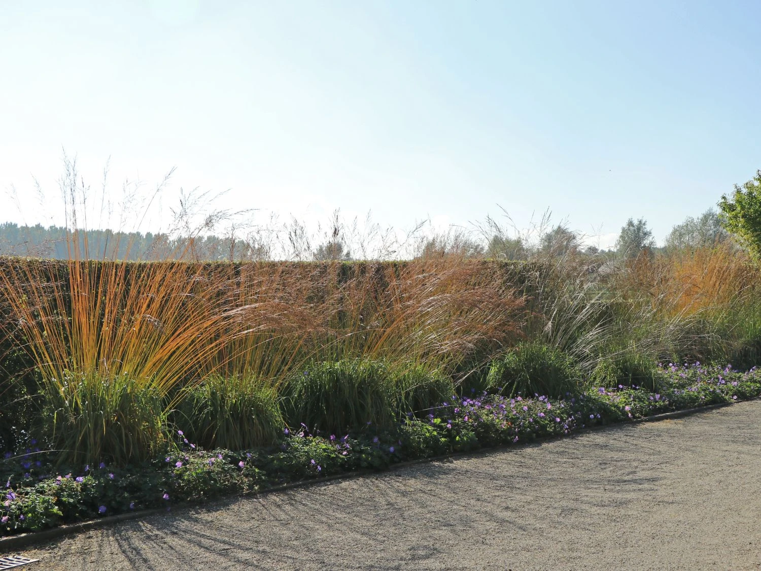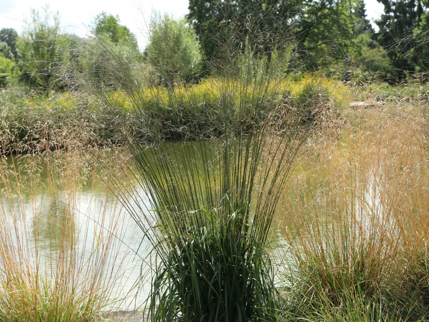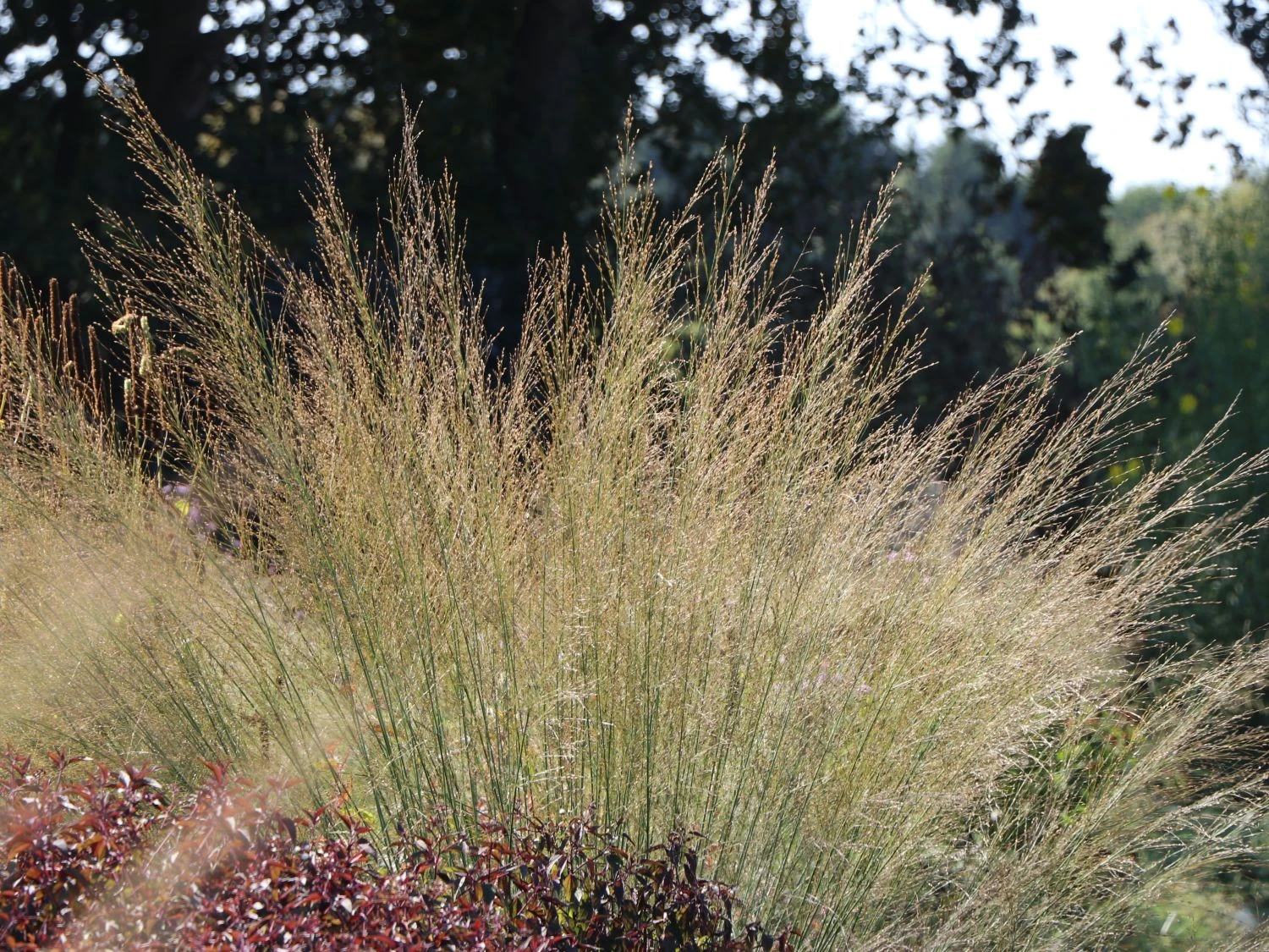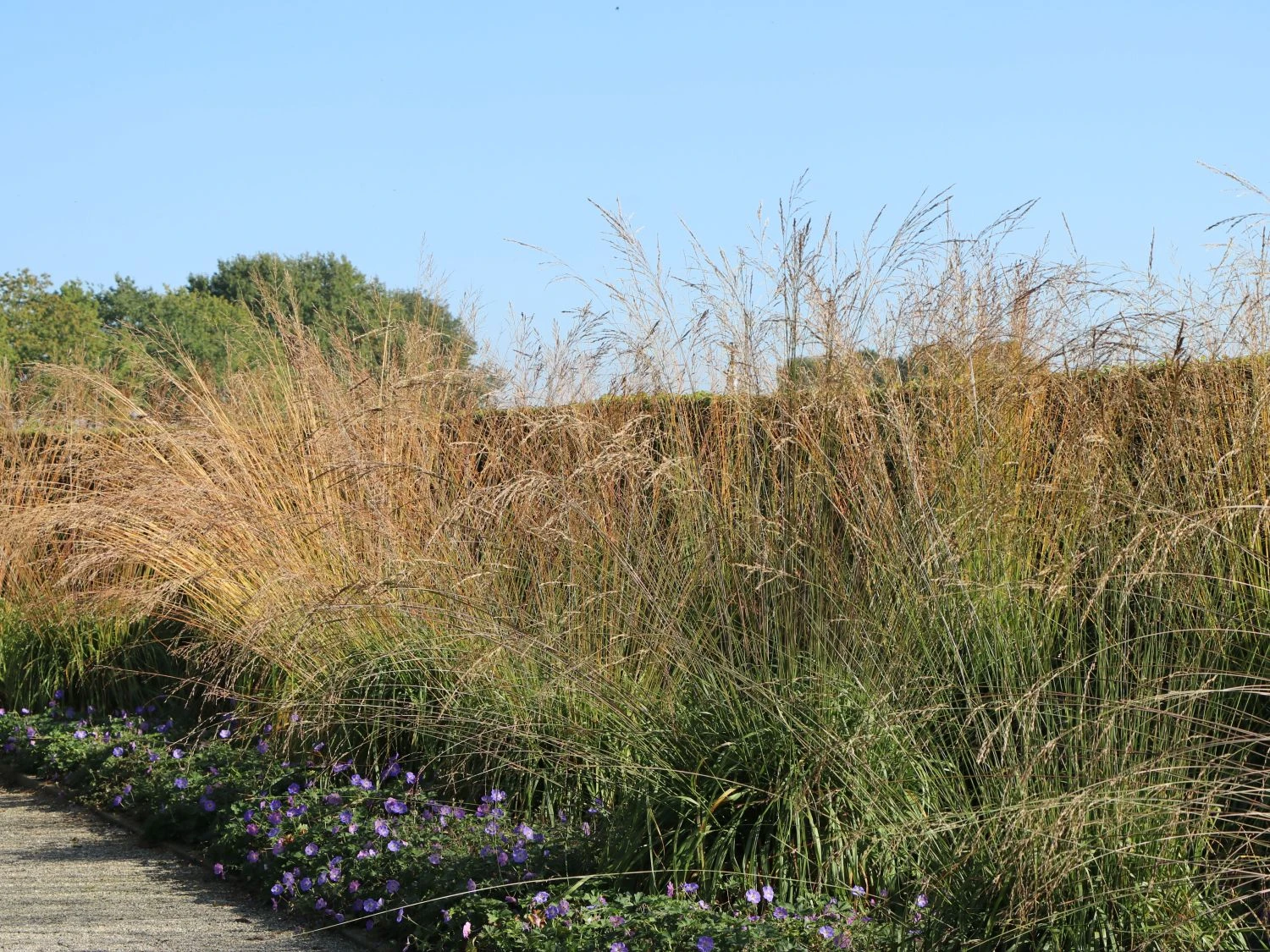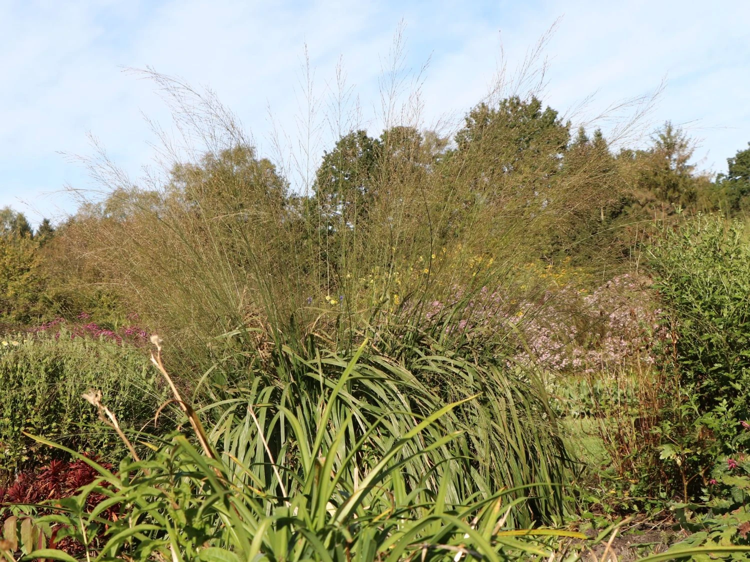 Welch eine Ästhetik! Schon sein Name ist Programm. Mit transparenter Eleganz erfreuen die grazilen, fein verzweigten Blütenstände das Auge jedes Betrachters. Das straff aufrecht wachsende Riesen Pfeifengras verfügt über einen horstigen Wuchs und erreicht in kurzer Zeit eine faszinierende Höhe. Mit maximal zwei Meter Höhe, bildet es ein dekoratives Element im Beet. Es stellt einen perfekten Hintergrund für bunt blühende Stauden oder Grüngehölze dar. Der Pflanzabstand für diese Grassorte beträgt circa 100 Zentimeter. Das Riesen Pfeifengras ‚Transparent‘ besitzt dichtes, wunderschön grünes Laub. Es lässt sich am Ende sacht und ausladend fallen. Die einzelnen Blätter sind breit, der Blattrand ist ganzrandig.