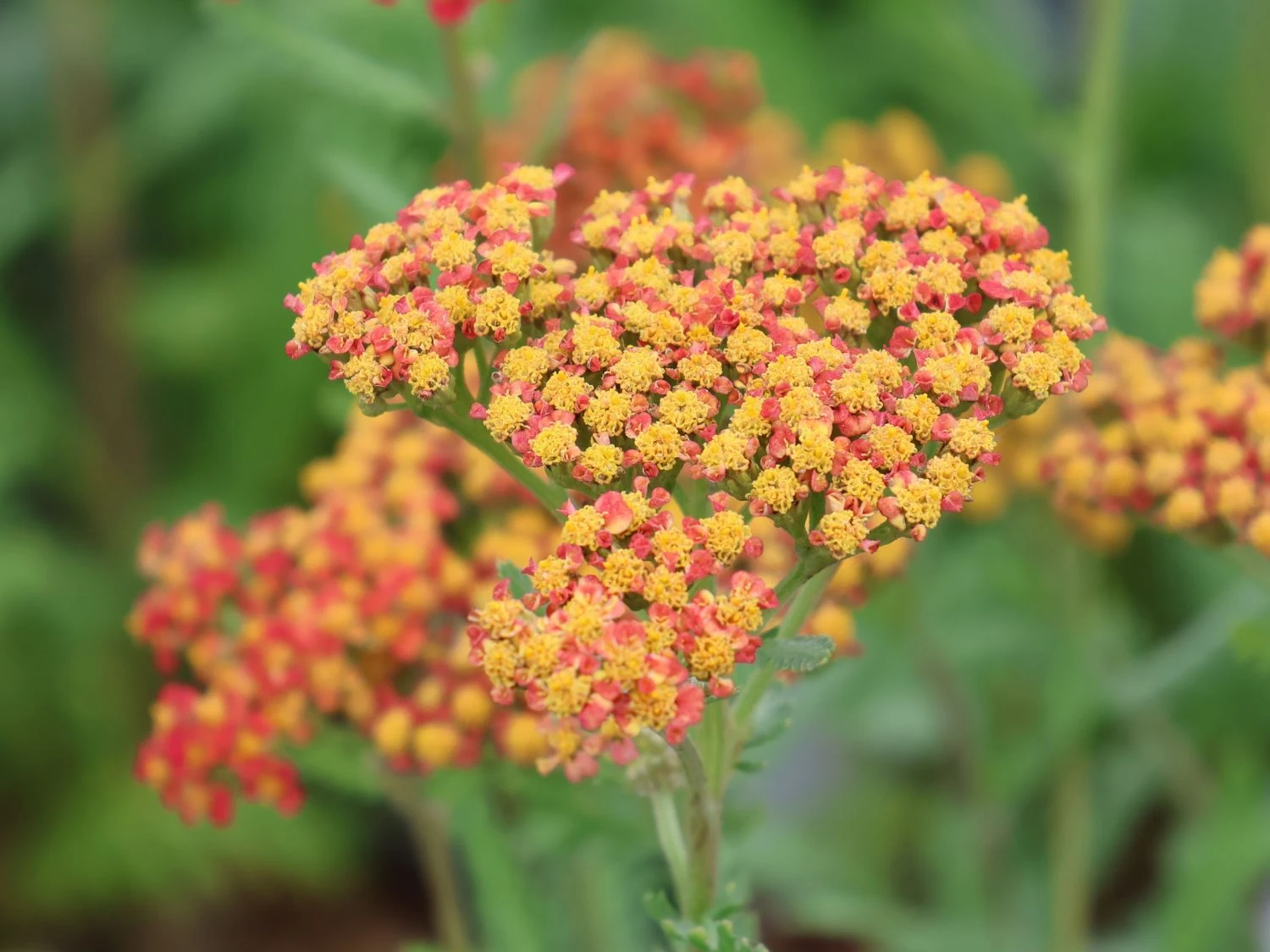 Die Schafgarbe ‚Safran‘ ist eine interessante neue Sorte unter den beliebten Schafgarben. Das absolut Besondere an dieser Sorte ist ihr auffallend schönes und wechselndes Farbspiel. Ist sie im Aufblühen in ein sanftes Orangerot getaucht, verändern sich die Blüten später zu einem fröhlichen Gelborange. Die Einzelblüten sind bei (bot.) Achillea millefolium ‚Safran‘ verhältnismäßig groß und setzen sich in großer Menge zu den schönen Dolden zusammen. Das graugrüne, feinzerteilte Laub der Schafgarbe ‚Safran‘ bildet einen ruhigen Hintergrund zu den auffallenden Farben der Blüten.