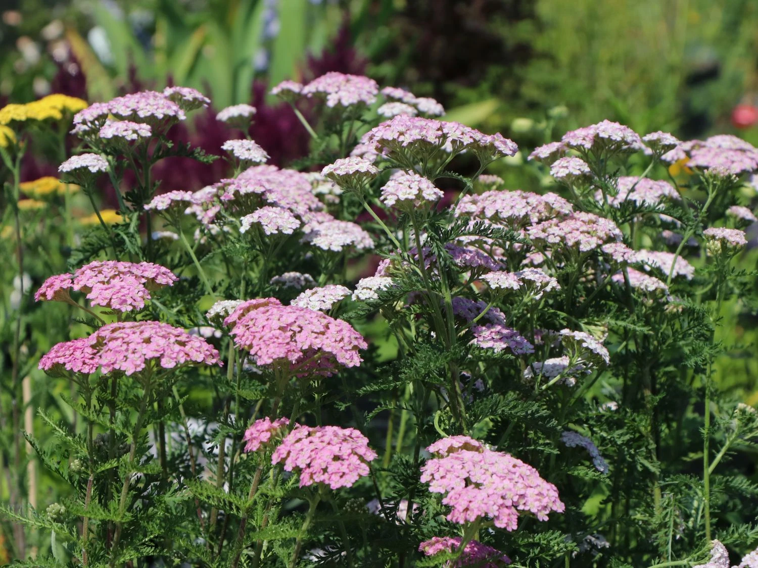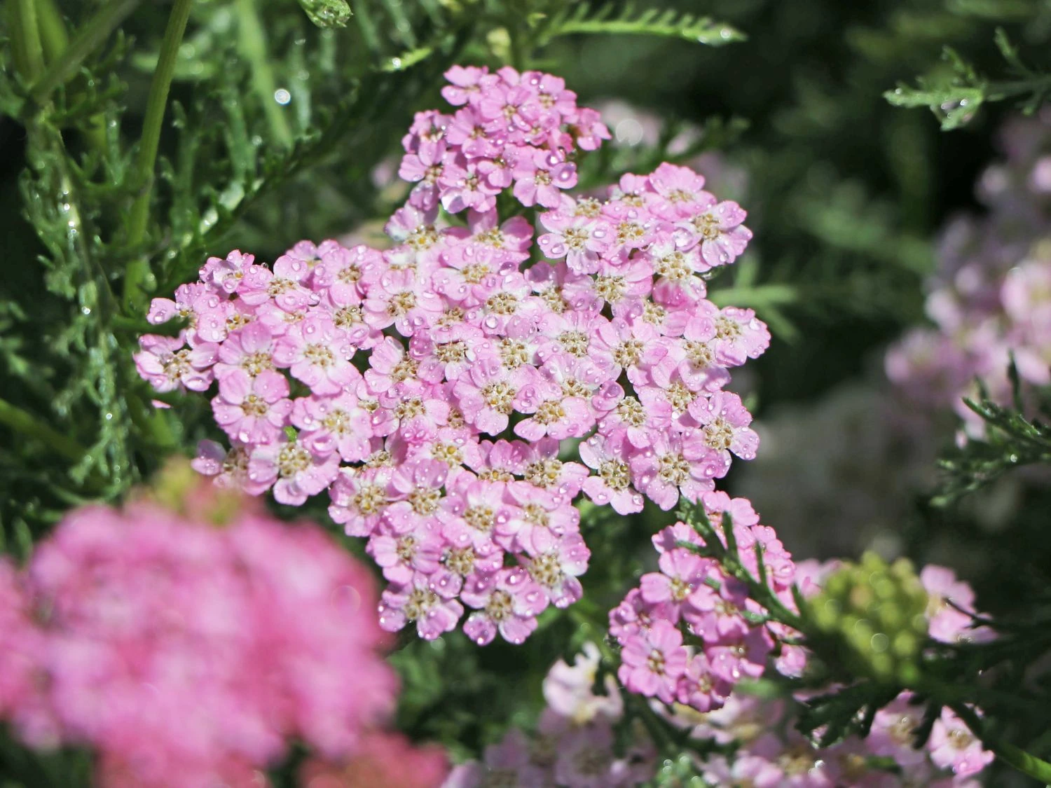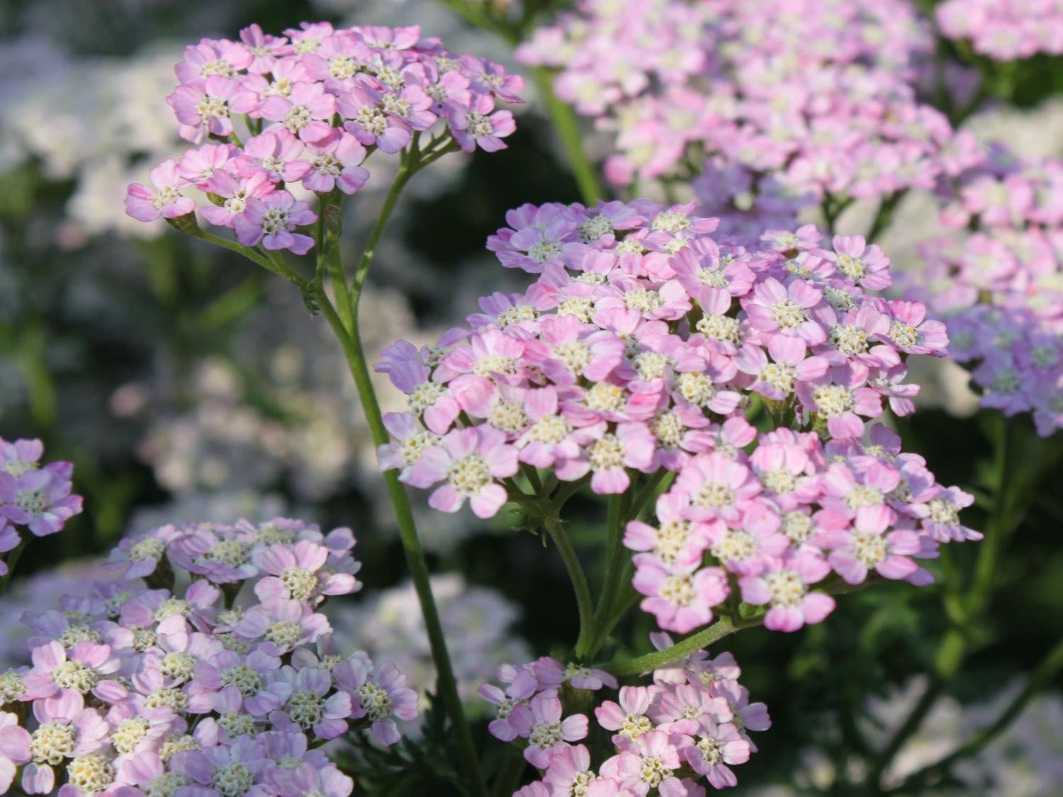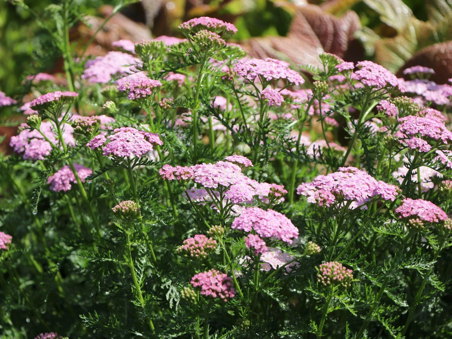 Die Schafgarbe ‚Wonderful Wampee‘ überzeugt mit ihren leuchtenden, standfesten und natürlichen Blüten. Leider ist die (bot.) Achillea millefolium ‚Wonderful Wampee‘ in Hausgärten noch ein seltener Gast. Die widerstandsfähige, mehrjährige Staude ist ein wahrer Geheimtipp für naturnahe Gärten! Die schöne Pflanze, auch als Gemeine Schafgarbe oder Gewöhnliche Schafgarbe bekannt, wächst bis zu 60 Zentimeter hoch und erreicht rund 50 Zentimeter in der Breite. Die Blütenstiele sind aufrecht und standfest. Aus den Knospen entstehen große Blütendolden, die sich erst in hellem Pink zeigen und sich im Verblühen weiß färben. Sie bringen ein natürliches Flair in den eigenen Garten. Von Juni bis September betören sie mit ihrem zauberhaften Anblick und bieten für Insekten viel Pollen und Nektar. Durch die einfache Blütenform ist die Blüte offen zugänglich und leicht für Bienen zu erreichen. Auch finden sich an der Blüte gerne Hummeln, Schmetterlinge und Marienkäfer ein. An einem sonnigen Standort fühlt sich die Schafgarbe ‚Wonderful Wampee‘ zu Hause. Sie glänzt als einzelne Staude und in der Gruppe. Für eine Gruppe finden acht bis zehn Pflanzen auf einem Quadratmeter ausreichenden Platz. In Beeten und auf Freiflächen betört Achillea millefolium ‚Wonderful Wampee‘ mit einem angenehmen Duft. Auf einem frischen, durchlässigen sowie humusreichen, steinigen lehmig-sandigen Boden breitet sie sich gerne aus.