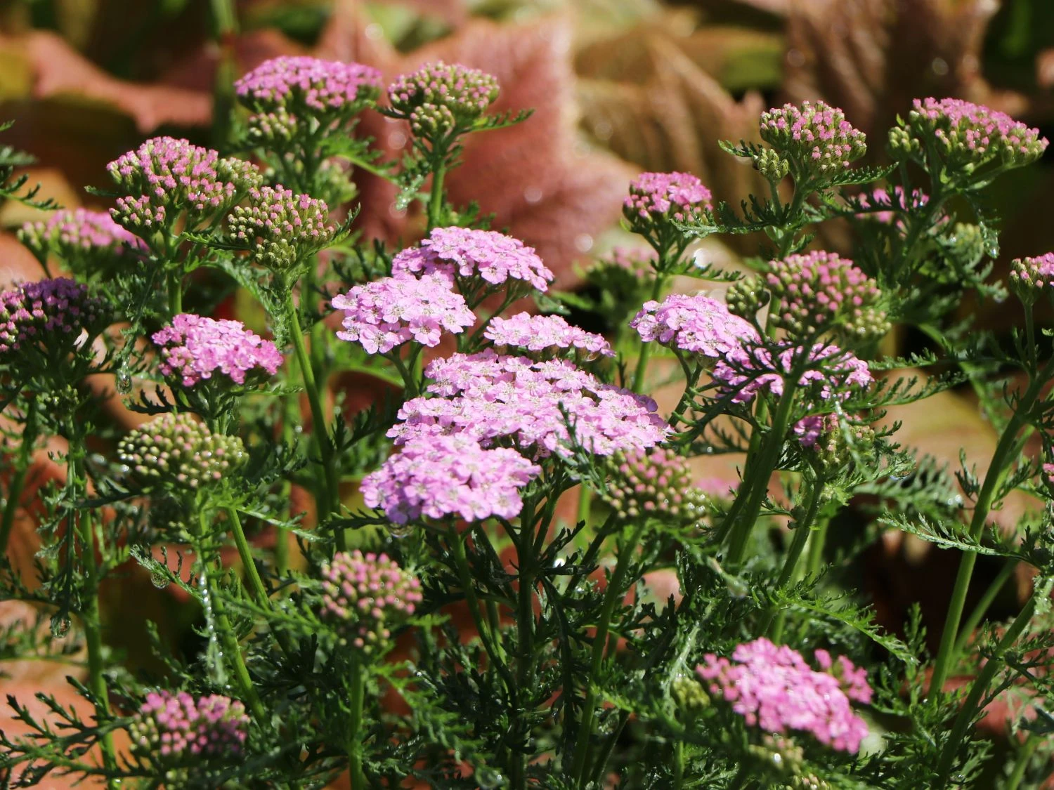 Nach der Blütezeit benötigt die Schafgarbe ‚Wonderful Wampee‘ einen Rückschnitt bis zur Basis. Durch das Ausknipsen verblühter Stängel, bilden sich zahlreiche neue Blütendolden. Um die Achillea vital und blühfreudig zu erhalten, empfiehlt es sich, die Gemeine Schafgarbe in ein Rhythmus von zwei- bis vier Jahren zu teilen und neu aufzupflanzen. Nach der Blüte entstehen unscheinbare gelbliche bis bräunliche Früchte, die winzige Samen beinhalten. Die wechselständig angeordneten, fiederartigen, weichen Blätter zeigen sich von Frühling bis zum Herbst in einem schönen Grün. Sie duften aromatisch! Die Gewöhnliche Schafgarbe trägt den Artnamen millefolium, der tausendblättrig bedeutet. Denn es erscheint, als seien die Blätter aus unzähligen Blättchen zusammengesetzt. Anfang Juni strecken sich die aufrechten Blütenstiele empor. Mit einer Winterhärte von bis zu -43°C kommt die Schafgarbe ‚Wonderful Wampee‘ gut durch die kalte Jahreszeit. Selbst mit langen Trockenphasen und viel Regen kommt sie zurecht. Um sich an der Blütenpracht von Achillea millefolium ‚Wonderful Wampee‘ über September hinweg zu erfreuen, lassen sich wunderschöne Trockensträuße herstellen. Sie verzieren die Wohnung und bringen im Herbst und Winter noch einen sommerlichen Gruß. Auch als Schnittblume in der Vase machen die Blüten der Staude einen herrlichen Eindruck.