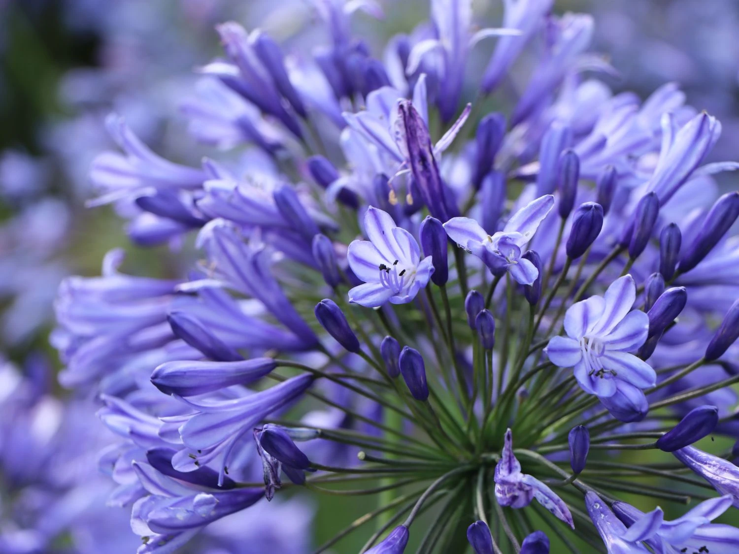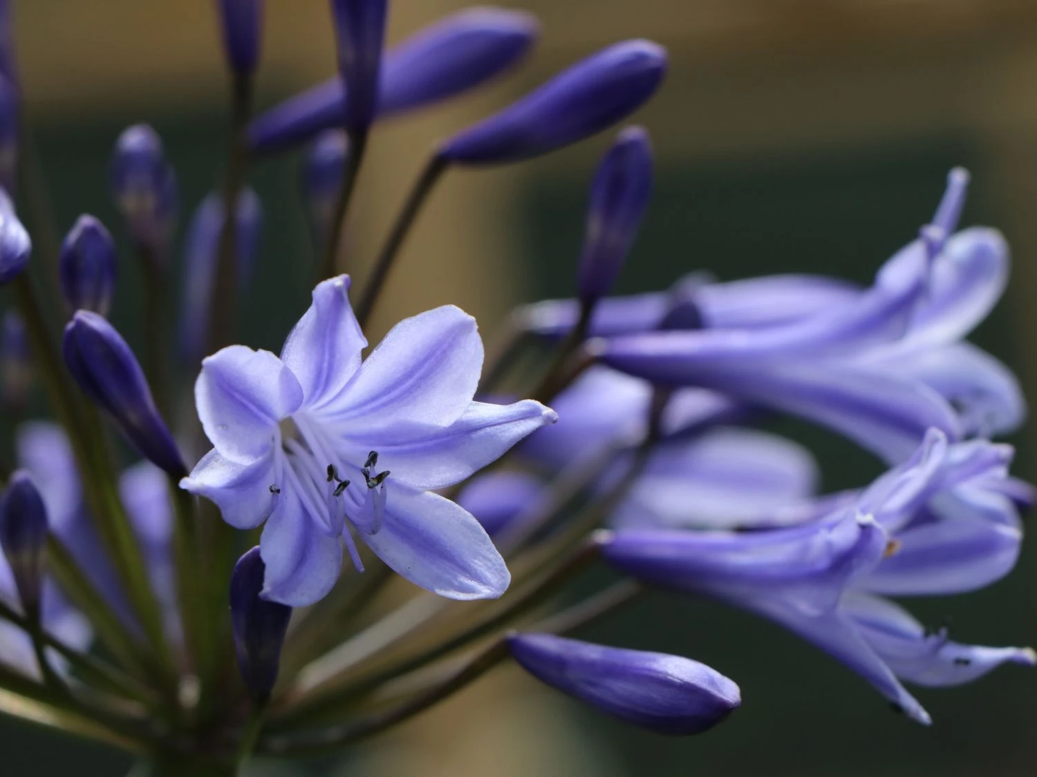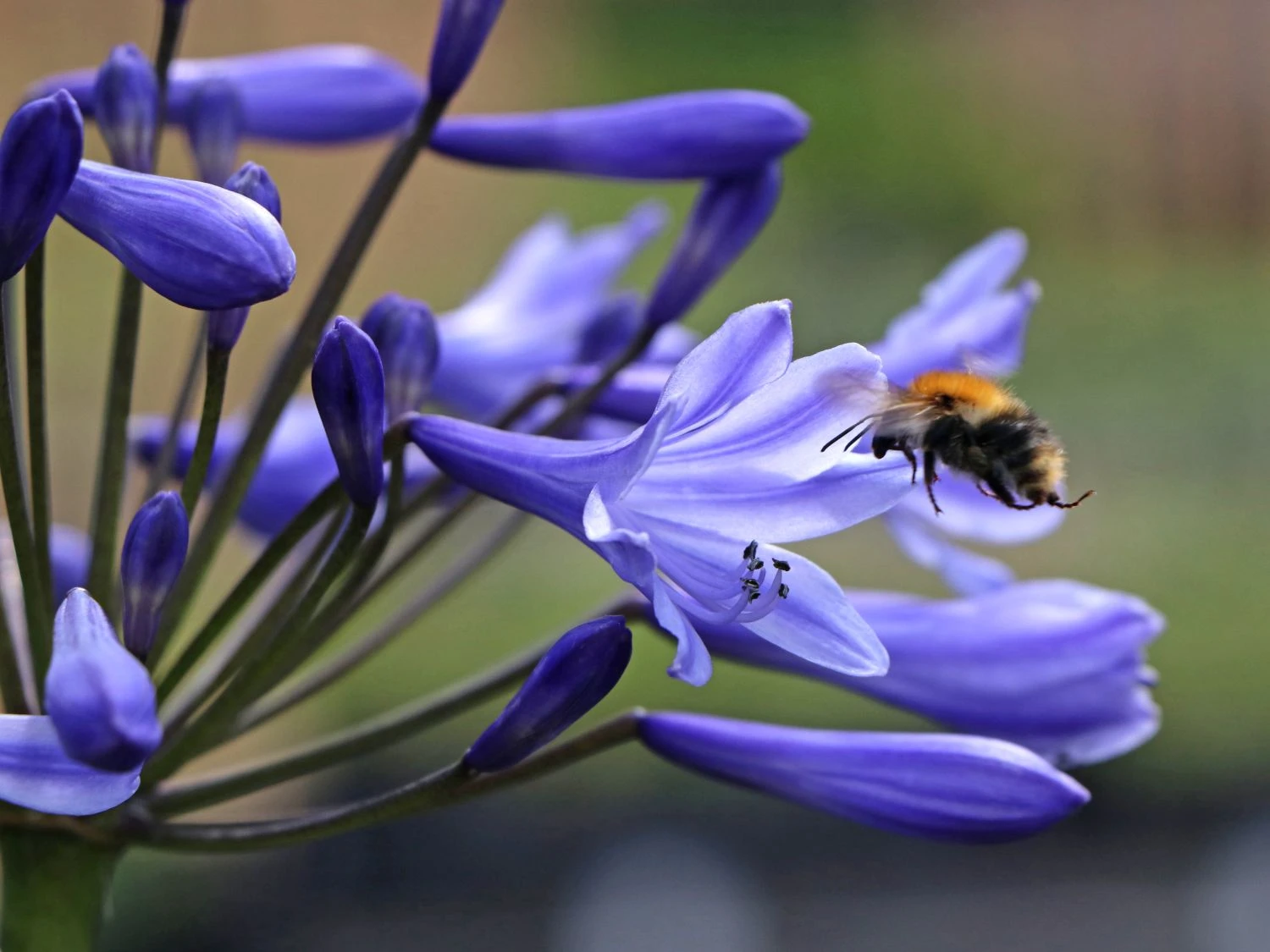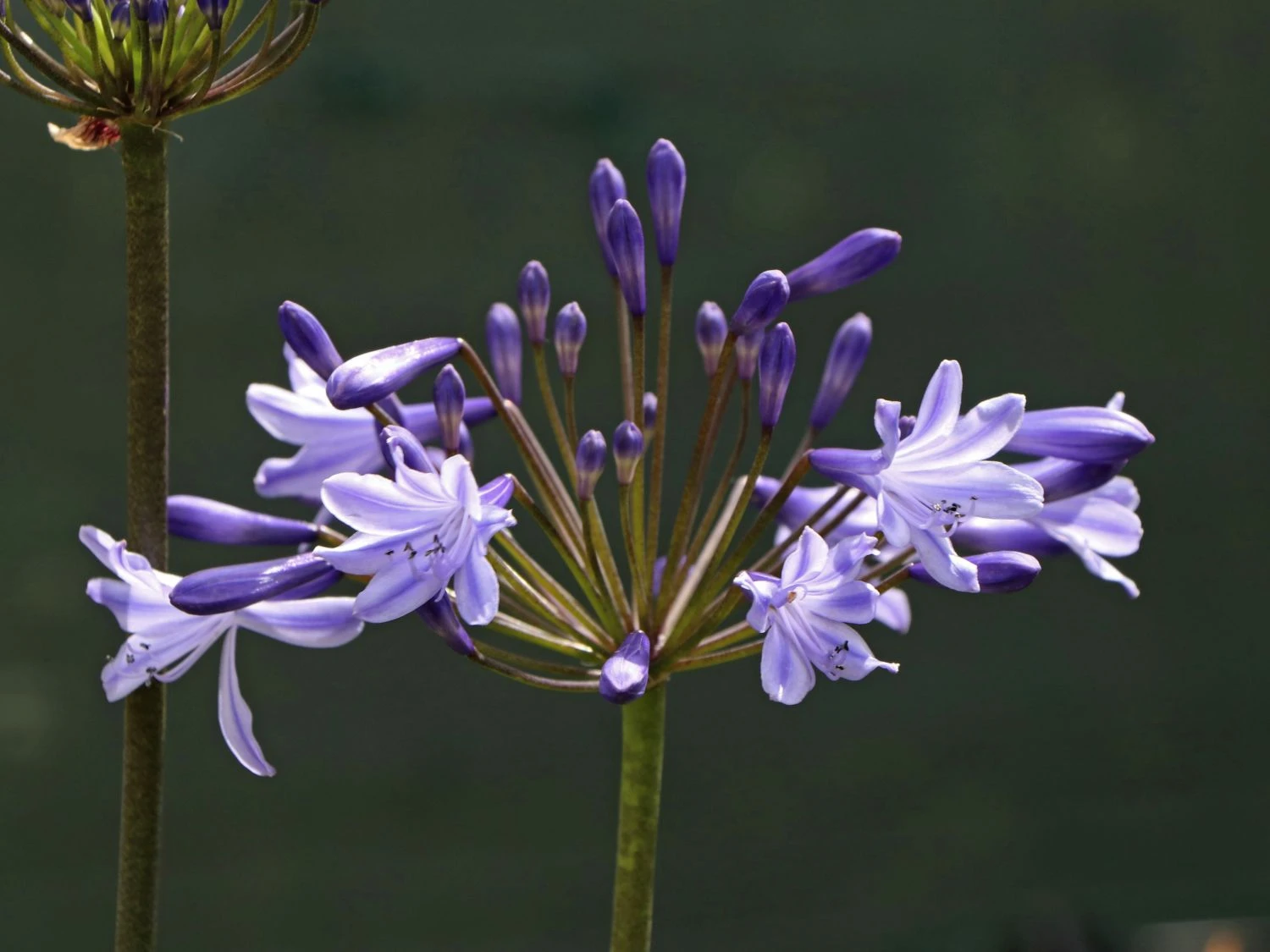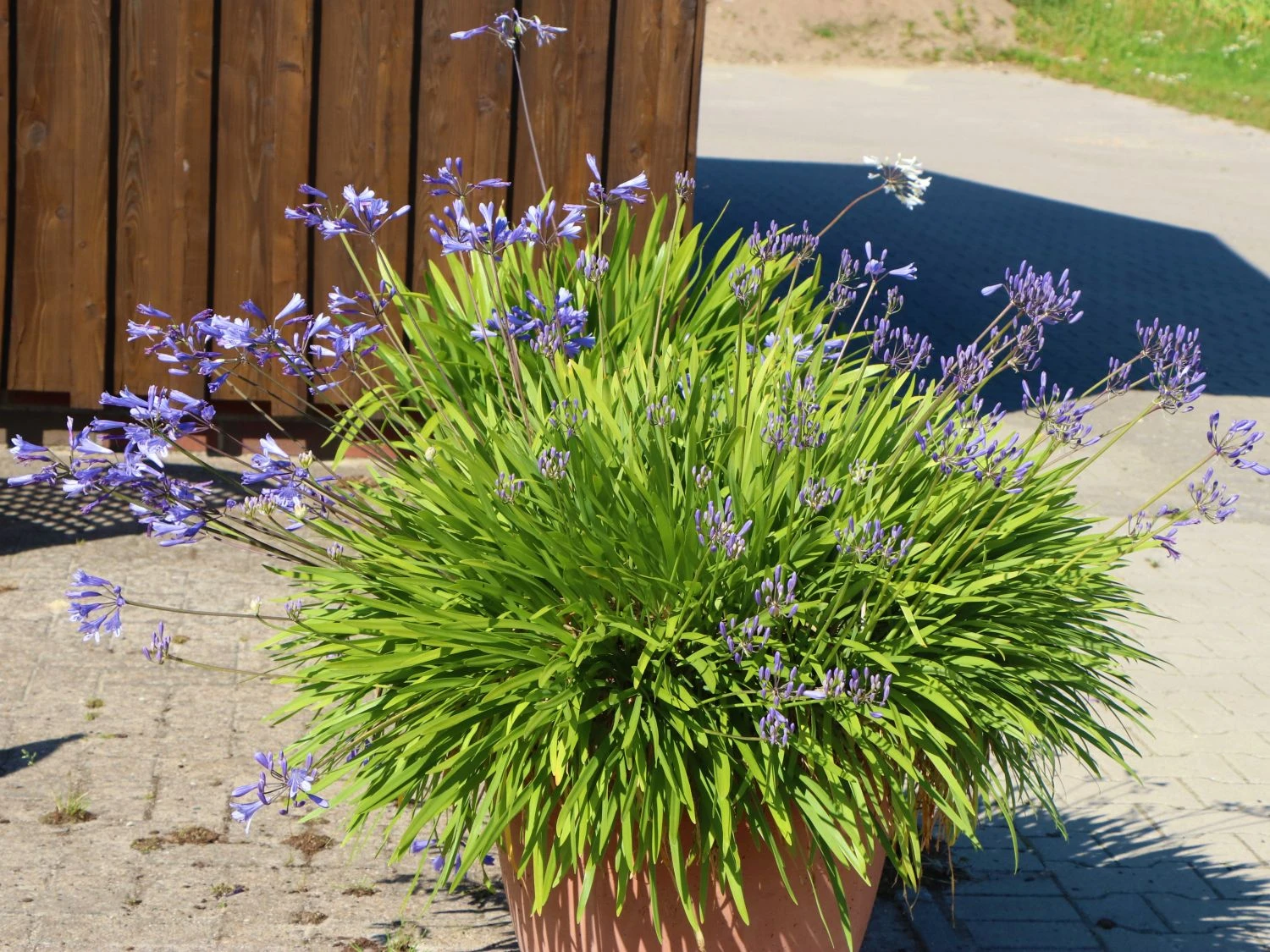 Das satte Grün der Belaubung bildet zur leuchtenden Blütenfarbe einen schönen Kontrast. Dies verleiht der Schmucklilie ‚Blue Triumphator‘ während der Blütezeit ein auffälliges und bezauberndes Erscheinungsbild. Diese Wirkung lässt sich durch das Pflanzen einer Gruppe mit hell blühenden Gewächsen weiter steigern. Weiße, gelbe oder orange Blüten bringen das intensive Blau der Agapanthus africanus ‚Blue Triumphator‘ noch ausgeprägter zum Vorschein. So entwickelt sich durch die kontrastreichen Blütenfarben ein beeindruckendes, buntes Naturschauspiel. Rund um die Ziergewächse entsteht während der Blütezeit, dank bestimmter Insekten, eine rege Betriebsamkeit. Mit ihren langen Rüsseln trinken sie den Nektar aus den trichterförmigen Blütenköpfen. Die herrliche Blütenfarbe der Schmucklilie ‚Blue Triumphator‘ und die rege Betriebsamkeit um sie herum, versprühen Lebendigkeit. Damit die Agapanthus africanus ‚Blue Triumphator‘ optimal gedeiht, benötigt sie viel Licht und Wärme. Daher sind sonnige Standorte gut geeignet. Außerdem bevorzugt die Schmucklilie ‚Blue Triumphator‘ für einen bestmöglichen Wuchs, frischen, nahrhaften Boden mit einer guten Durchlässigkeit. Ein schwach saurer bis schwach kalkhaltiger pH-Wert, perfektioniert den Boden. Sind solche Gegebenheiten vorhanden, finden zwei bis drei Pflanzen auf einer Fläche von einem Quadratmeter ihren Platz. In Gruppen, ebenso als Einzelpflanze, entwickelt die Afrikanische Schmucklilie einen prächtigen Wuchs. Die Agapanthus africanus ‚Blue Triumphator‘ erfreut den Betrachter mehrjährig. Mit ihrer außergewöhnlich langen Blütezeit, ermöglicht sie langfristig einen wundervollen Anblick auf ihre großen, leuchtend blauen Blütendolden. Aufgrund ihrer Eigenschaft als Schnittblume, setzt die Agapanthus africanus ‚Blue Triumphator‘ in Vasen dekorative Akzente. Aufgrund ihrer fehlenden Winterhärte, achtet der Gärtner bei der Standortwahl im Garten auf einen geschützten Standort. Sie benötigt einen zusätzlichen Winterschutz. Im Kübel überwintert sie am besten in einem frostfreien Raum.