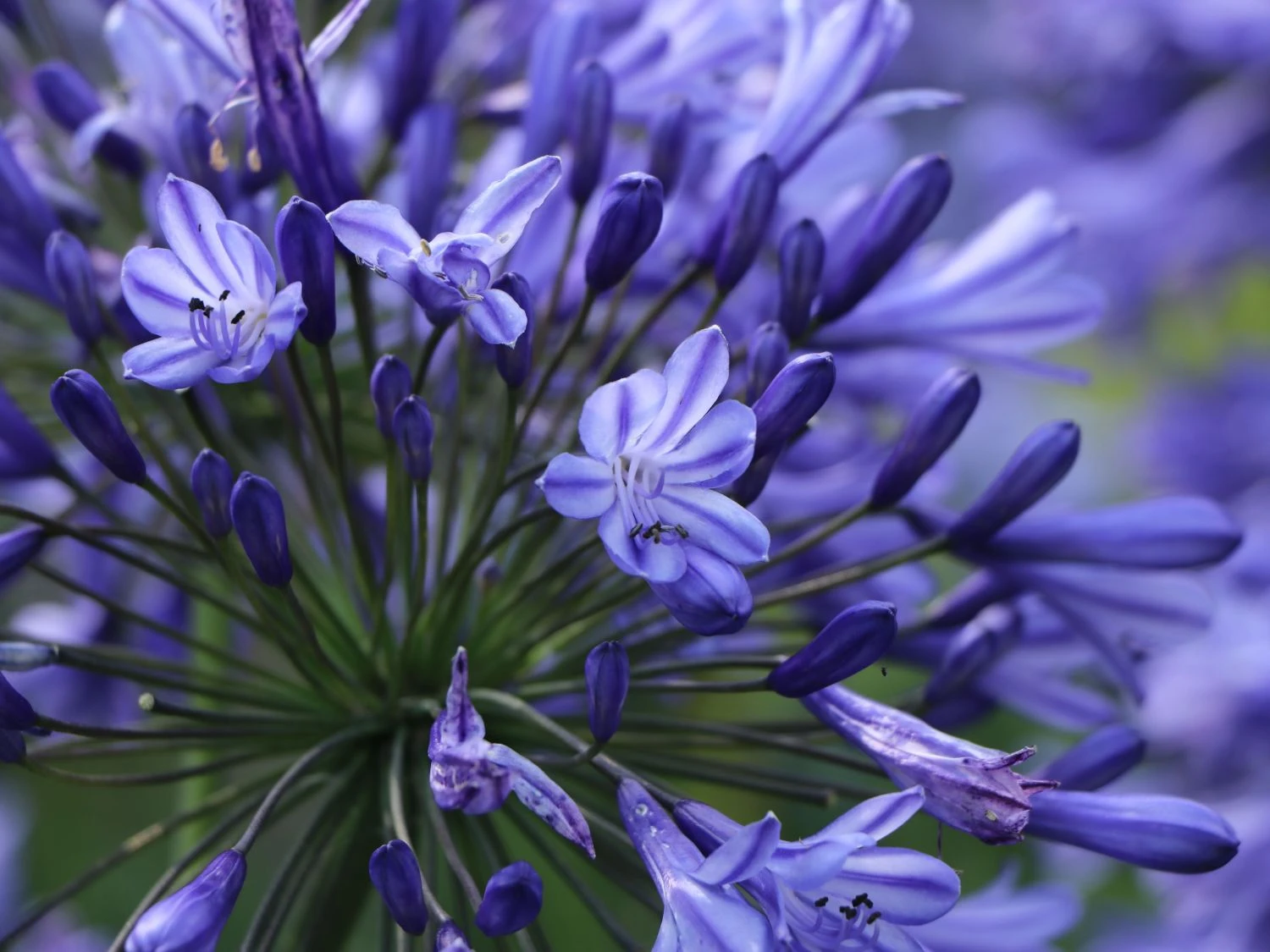 Die Schmucklilie ‚Blue Triumphator‘ entspricht in vollem Umfang ihrem Namen. Sie besticht durch große, auffällige, blaue Blütendolden. Diese bestehen aus vielen, wunderschönen, blau leuchtenden Einzelblüten. Sie befinden sich ausschließlich an der Spitze der aufrechten Stängel und ziehen mit ihrer Attraktivität alle Aufmerksamkeit auf sich. Die (bot.) Agapanthus africanus ‚Blue Triumphator‘ ist vielen Gärtner als Afrikanische Schmucklilie bekannt. Denn diese schöne Pflanze stammt ursprünglich aus dem Süden Afrikas. Während ihrer unglaublich langen Blütezeit erscheint sie wie ein kleines Juwel des Gartens. Die Kultivierung der Agapanthus africanus ‚Blue Triumphator‘ als Staude, vollzog sich in Europa vor langer Zeit. Seitdem erweitert sie, überwiegend als Kübelpflanze, in den Sommermonaten die Blütenvielfalt der Gärten. Im Laufe ihrer Wachstumsphase erreicht sie eine Wuchshöhe von 50 bis 100 Zentimetern und eine Wuchsbreite von 50 bis 100 Zentimetern. Das Erscheinungsbild der Schmucklilie ‚Blue Triumphator‘ ist geprägt von aufrechten Stängeln, die leicht buschig wachsen. Überwiegend im unteren Bereich der Pflanze, bilden sich grüne, riemenförmig geformte Blätter. An der Spitze der Stängel wachsen, von Anfang Juni bis Ende August, doldenförmige Blütenbälle. Diese bestehen aus vielen trichterförmigen, einfachen Blüten. Sie sind als zierendes Gesamtbild eine wahre Augenweide. Die blühenden Dolden wirken mehr als faszinierend auf den Betrachter. Die vielen kleinen Einzelblüten erreichen, mit einer Größe von zwei bis drei Zentimetern, eine insgesamte Größe von mehr als zehn Zentimetern.