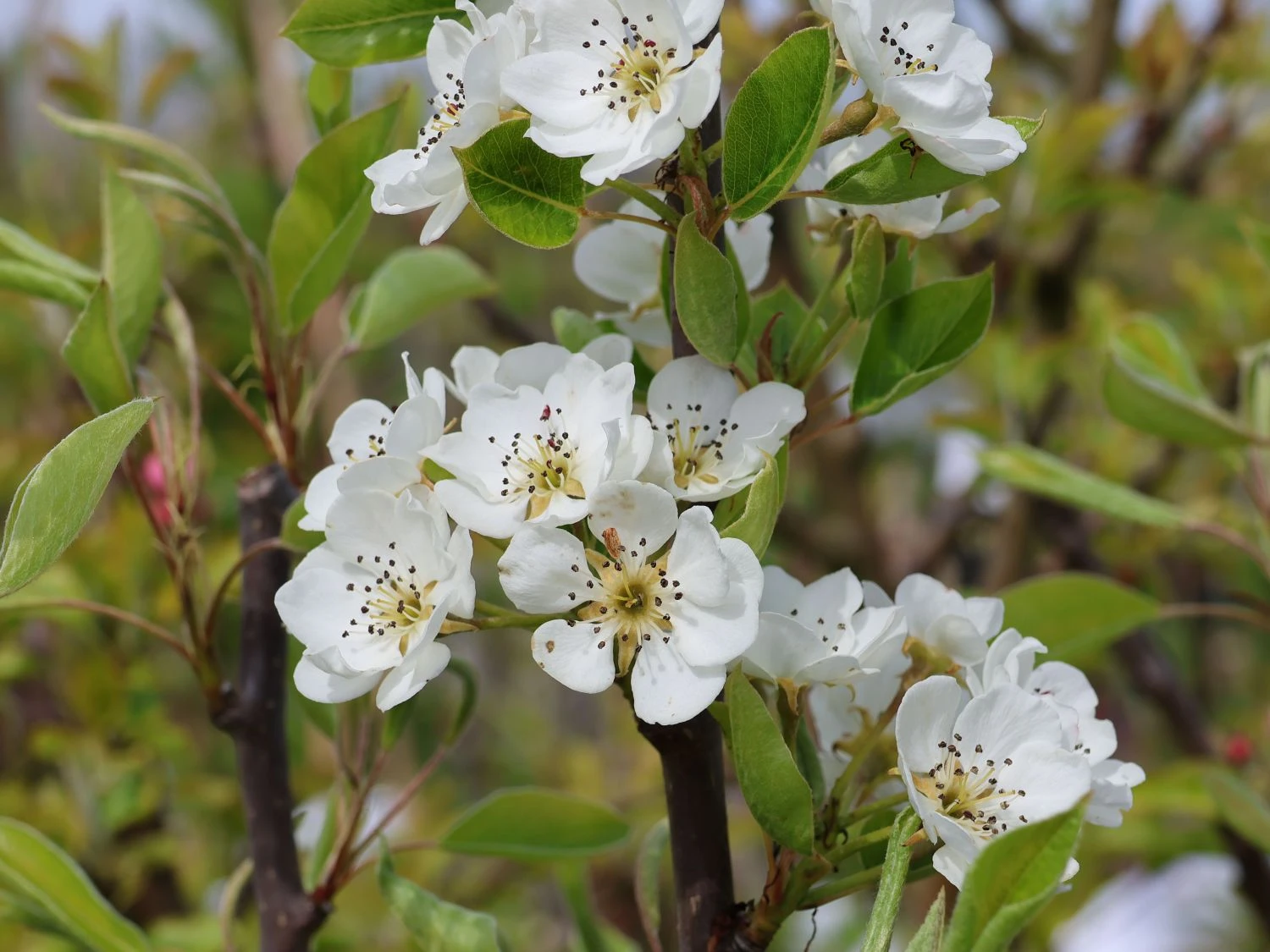 Mit ihrer kräftig roten Schale verführen die mittelgroßen Birnen zum Reinbeißen. Ihr gelb-weißes Fruchtfleisch erfrischt alle Sinne mit seinem fein schmelzenden Geschmack. Die Sommerbirne ‚Rote Williams Christ‘ ist die dunkelrote Form der klassischen Sorte ‚Williams Christ‘. Sie beschenkt den Gartenfreund nicht nur mit ihren wohlschmeckenden Früchten mit vollem Aroma, sondern ist auch optisch ein wunderschöner Blickfang im Garten. Die (bot.) Pyrus communis ‚Rote Williams Christ‘ ist durch ihren aufrechten, breit-buschigen Wuchs gekennzeichnet. Der kleine Obstbaum wächst mittelstark und ist gut verzweigt. Er erreicht eine Höhe zwischen 200 und 400 cm und geht bis zu 300 cm in die Breite. Pro Jahr legt er 20 bis 40 cm zu. Die Laubblätter dieser Birnensorte sind oval bis elliptisch geformt und weisen einen gezähnten Rand auf. Mit ihrer glänzenden, dunkelgrünen Farbe sind sie dekorativ. Die Blätter nehmen im Herbst einen gelben bis orangeroten Farbton an. Zum Winter hin wirft das Gehölz das Laub ab und begibt sich in die Ruhephase. Im Mai erwacht die Sommerbirne ‚Rote Williams Christ‘ erneut und entzückt mit einem Blütenmeer. Die Triebe sind von unzähligen Blütendolden übersät. Sie strahlen in einem reinen Weiß und verströmen einen angenehmen Duft. Bienen und Hummeln dienen sie als bedeutende Nahrungsquelle. Der schönste Schmuck von Pyrus communis ‚Rote Williams Christ‘ sind ihre prächtigen Birnen. Im Laufe des Sommers bilden sie sich aus den Blüten. Sie erscheinen zuerst mit einer glatten, gelblichen Schale, die sich bei Genussreife dunkelrot färbt. Die Erntezeit der leckeren Tafelbirnen liegt zwischen August und September. Direkt vom Baum genossen, sind die Früchte eine willkommene Erfrischung an heißen Sommertagen. Ihr zart schmelzendes, aromatisches Fruchtfleisch ist saftig und süß und zergeht genüsslich auf der Zunge.