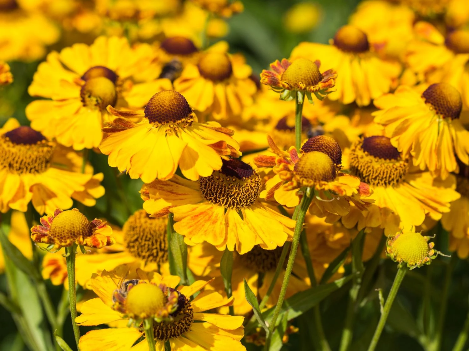 Manch einer könnte behaupten, ein Garten ohne Helenium x cult. ‚Goldrausch‘ sei nicht vollständig. Mit den groß gewachsenen Pflanzen lassen sich sehr gut Gestaltungsakzente setzen, sie thront ja meistens weit über den anderen Stauden. Die lebensfrohe Ausstrahlung der Blume, ihre wunderschönen Blüten und ihre frischgrünen Blätter erfreuen das Auge des Betrachters. Auch Bienen können dem leuchtenden Goldgelb nicht widerstehen und fliegen gerne Pflanzen dieses Typs an. Obendrein zeichnet sich die Sonnenbraut ‚Goldrausch‘ auch noch durch ihre hervorragende Winterhärte aus. Viele Gründe also, die dafür sprechen, diese faszinierende Blume in den eigenen Garten aufzunehmen.