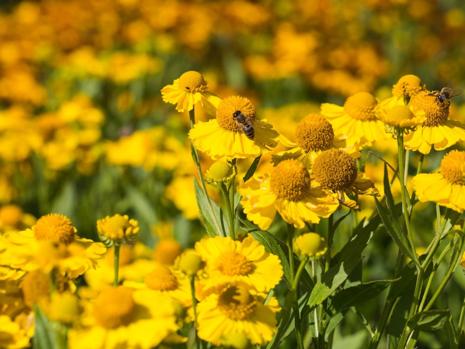 Nicht nur mit Rosen, sondern auch mit Gräsern oder anderen Staudenarten im Beet verträgt sich die facettenreiche Pflanze großartig. Auch schöne Freiflächen kann die Sonnenbraut ‚Kanaria‘ füllen und hinreißende Anblicke zaubern. Die schalenförmigen, großen Blüten zeigen sich in einem leuchtenden hellgelb. Von Juli bis Anfang September kann sich die Helenium x cult. ‚Kanaria‘, wie sie botanisch genannt wird, mit ihrem Blütenreichtum zeigen. Dabei können die Einzelblüten im Durchschnitt sogar einen Durchmesser von über 10 cm erreichen und unterstützen somit die eindrucksvolle Optik der Gartenpflanze.