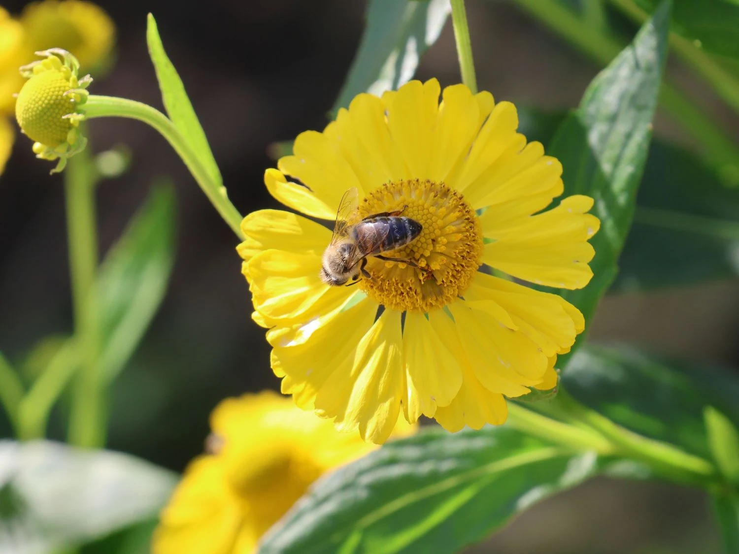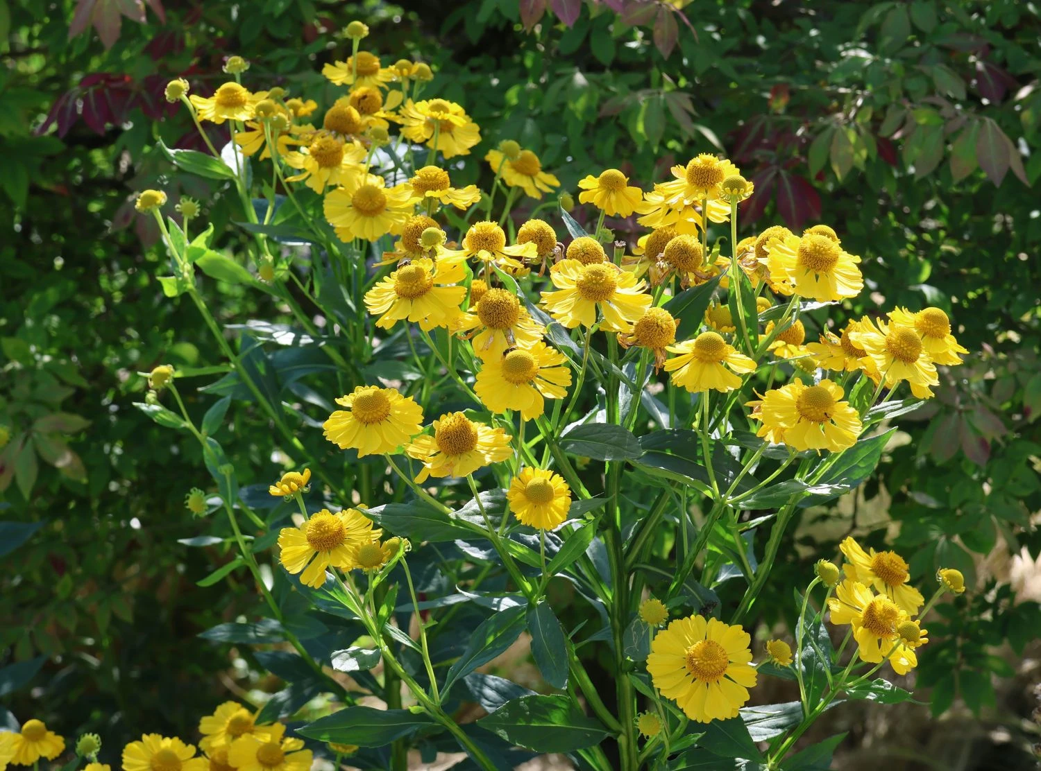 Sie ist tatsächlich eine wirkliche Sonnenbraut und erstrahlt mit ihrer Blütenpracht den ganzen Garten leuchtend gelb. Kein Wunder, dass die Sonnenbraut ‚Kanaria‘ als Standort die volle Sonne bevorzugt. Ist sie doch eine kanarische Schönheit mit besonderem Flair; und diesen weiß sie zu präsentieren. Neben den vielen optischen Reizen versprüht sie den leichten Duft von Nektar, den selbstverständlich viele Insekten zu schätzen wissen. Als wichtige Bienenweide lockt die Pflanze somit viele fleißigen Bienchen an und auch Schmetterlinge werden von der beeindruckenden Staude angezogen. Ein so schönes buntes Treiben, was während der Blühphase beobachtet werden kann. Ein Schauspiel zum Entspannen im Garten.