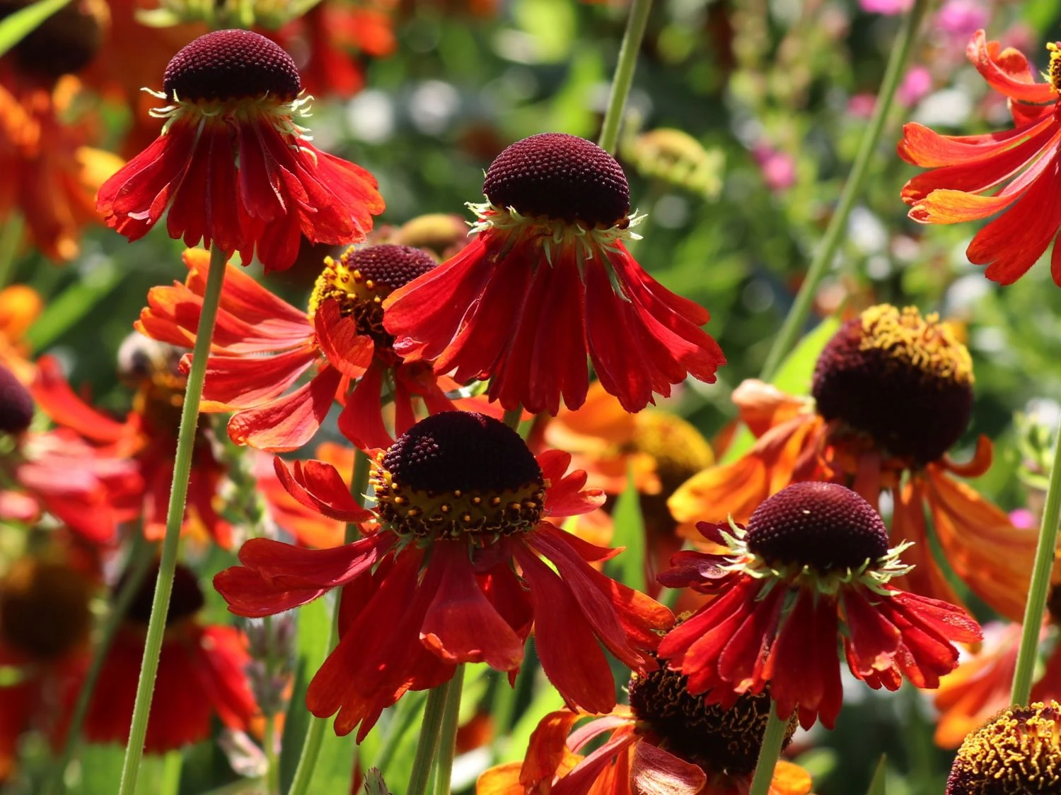 Diese wunderschöne Pflanze zählt zu den Stauden des Jahres 2008. Gemeint ist die Sonnenbraut ‚Moerheim Beauty‘ (bot. Helenium x cultorum ‚Moerheim Beauty‘), welche mit ihren vielen, kleinen Blüten an eine kupferrote Sonne erinnert, die sich in jedem Garten perfekt einfindet. Vom Frühsommer bis Herbst ist das Bestaunen der Fröhlichkeit und Leuchtkraft der Staude möglich. Heute ist sie eine beliebte Pflanze in den heimischen Gärten, die mit ihrer wunderschönen Farbe punktet. Neben der Blüte überzeugt die lange und schmale Belaubung der Pflanze. Diese ist in einem Dunkelgrün gehalten und setzt sich geschickt von dem kräftigen Braunrot ab. Wegen ihrer schönen Optik, ist die Staude perfekt als Schnittblume in einer Vase geeignet.
