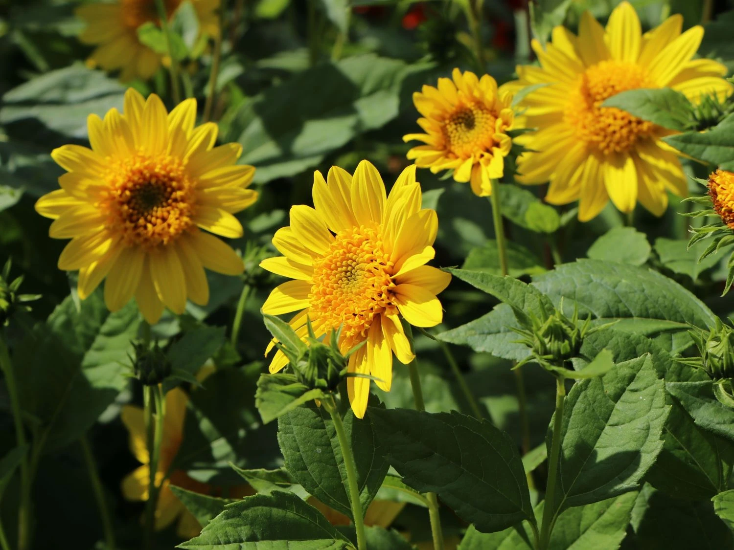 Die Stauden-Sonnenblume ‚Meteor‘ erfreut mit ihren großen, goldgelben Blüten jeden Betrachter. Die Blütezeit beginnt im August und endet im September. Dabei setzen sich die leuchtenden Blüten sehr gut zu dem dunkelgrünen Blattwerk ab. Die Staude bildet einen ebenmäßigen Kranz von Zungenblüten, der ihr ein nahezu perfektes Aussehen verleiht. Aufgrund von ihrem herrlichen Wuchs und den sehr schönen Blüten ist die Stauden-Sonnenblume ‚Meteor‘ ein absoluter Blickfang in jedem Garten, sodass es kaum verwunderlich ist, dass sich immer mehr Gärtner für diese Pflanze entscheiden.