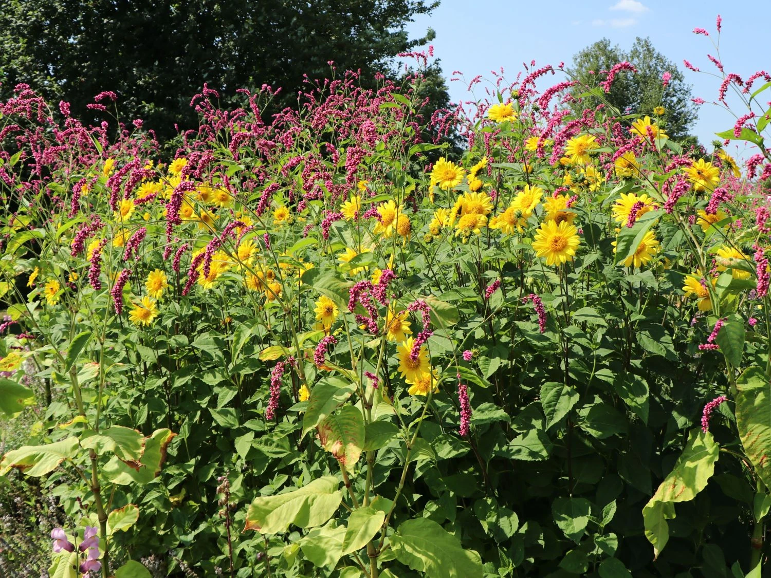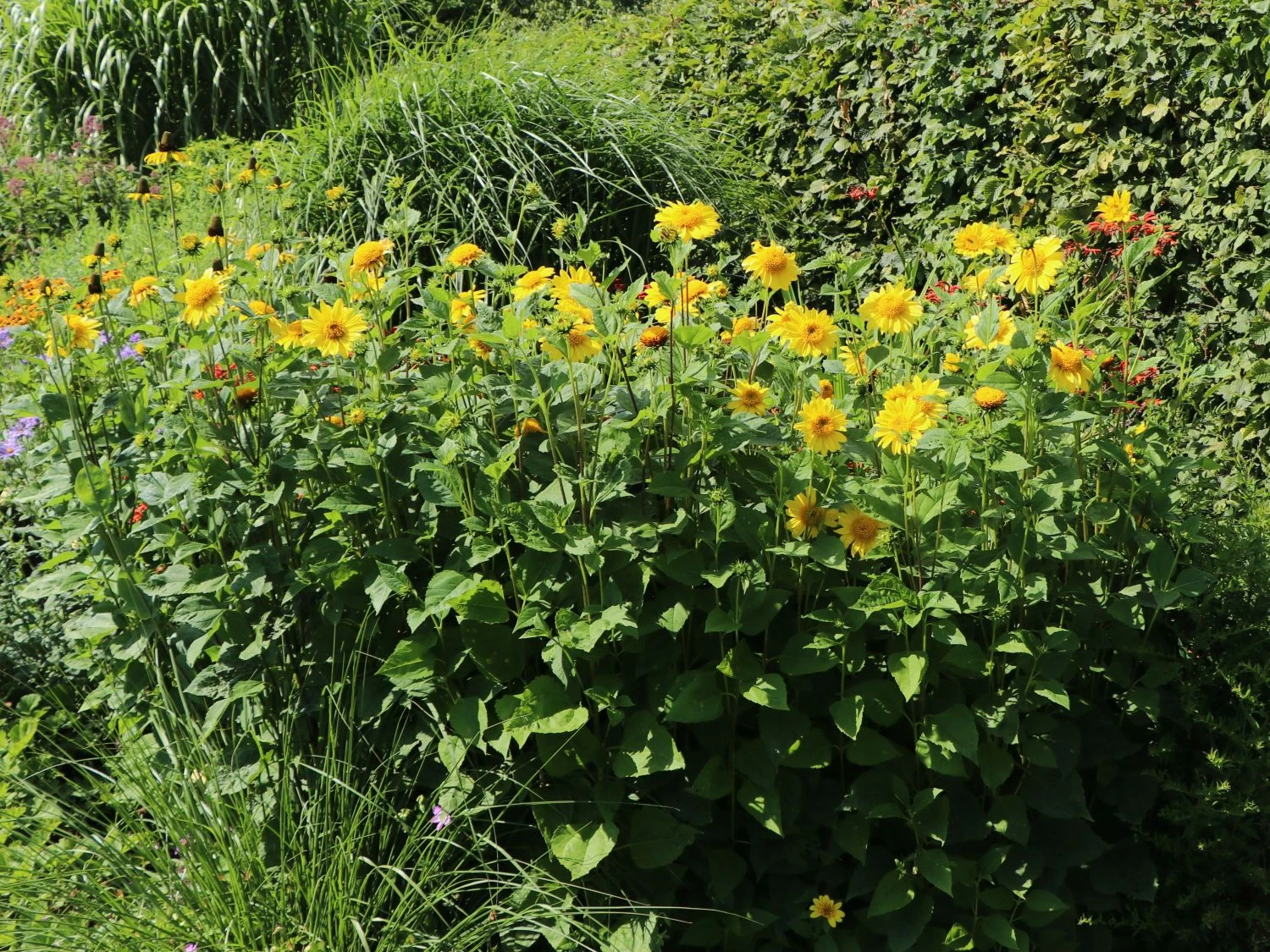 Wenn die Stauden-Sonnenblume ‚Meteor‘ an einen optimalen Standort gesetzt wird, erfreut sie ihren Besitzer nicht nur mit einem wunderschönen Wuchs, sondern ebenfalls damit, dass sie kaum Pflege benötigt. So können sich selbst die Hobby-Gärtner für diese Pflanze entscheiden, die nicht viel Zeit in die Gartenpflege investieren. Des Weiteren wird die Helianthus decapetalus ‚Meteor‘ auch sehr gerne als Bienenweide eingesetzt, da die fleißigen Insekten hier viel Nektar sammeln können. Aufgrund dessen können auf der Pflanze vermehrt Bienen, Hummeln und Co beobachtet werden, sodass auch Naturliebhaber hier voll und ganz auf ihre Kosten kommen.