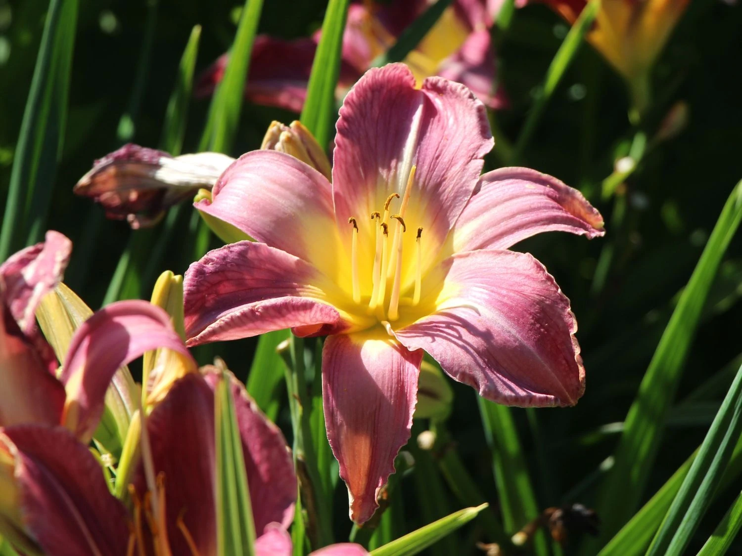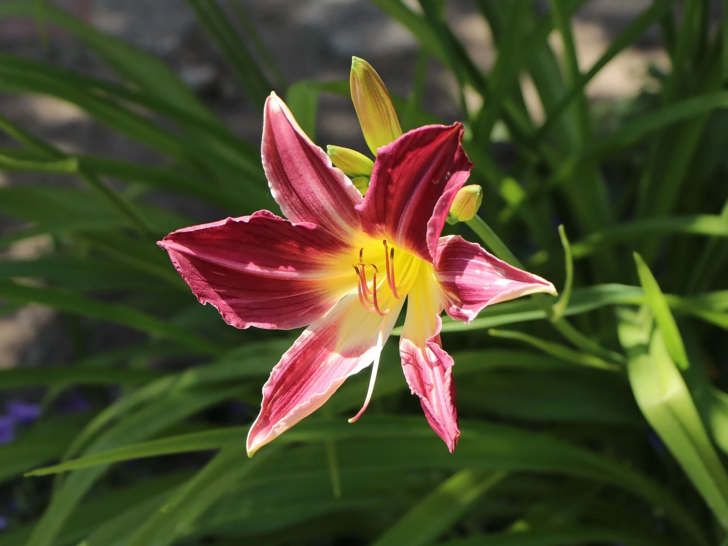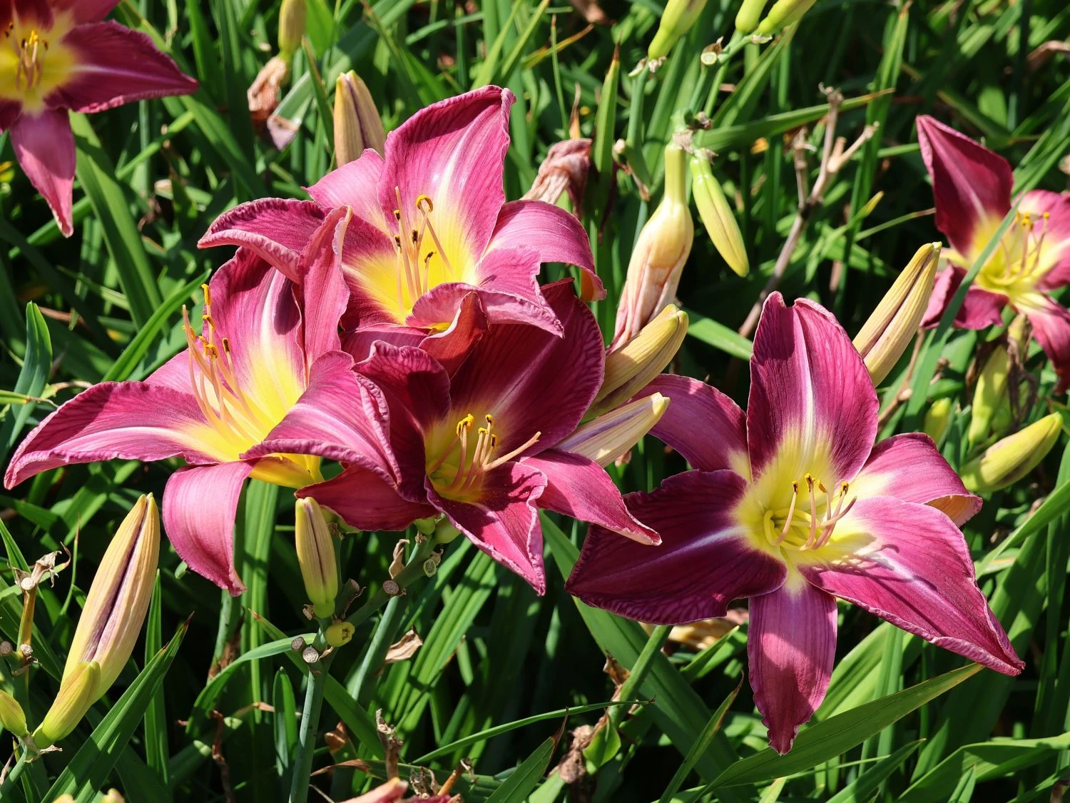 Die Taglilie ‚Lavender Deal‘ sticht aufgrund ihrer enormen Wuchshöhe von 50 bis 80 Zentimetern ebenso ins Auge, wie wegen ihrer wunderschönen Blüten. Die Staude besitzt lavendel- bis purpurrotfarbene Blütenblätter, die eine zierliche weiße Mittelrippe aufweisen, was einen sehr schönen Kontrast ergibt. Dazu fällt der gelb-grüne Schlund in der Mitte der Pflanze auf, sodass die Taglilie ‚Lavender Deal‘ aufgrund ihrer mehreren Farben zu einem echten Highlight in jedem Garten wird. Zudem bildet das grüne Blattwerk hierfür einen sehr schönen, farbigen Rahmen.