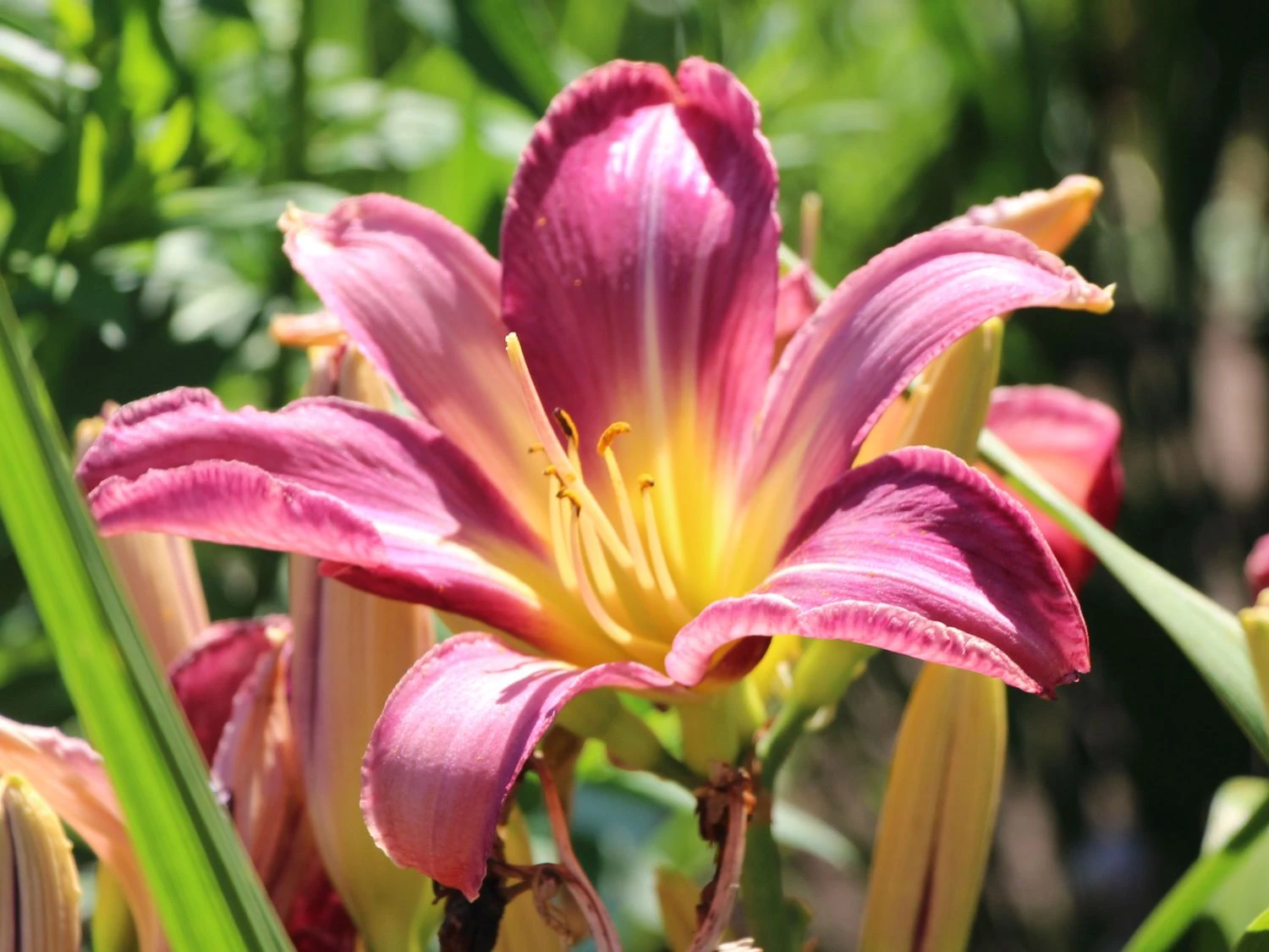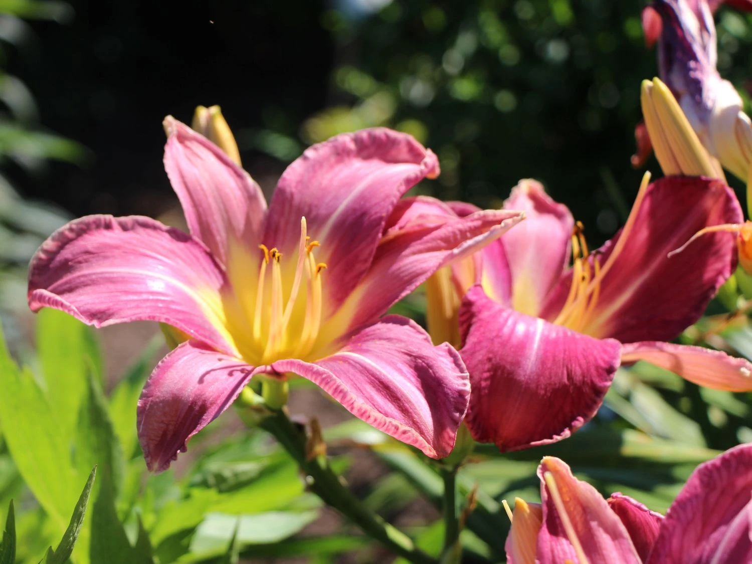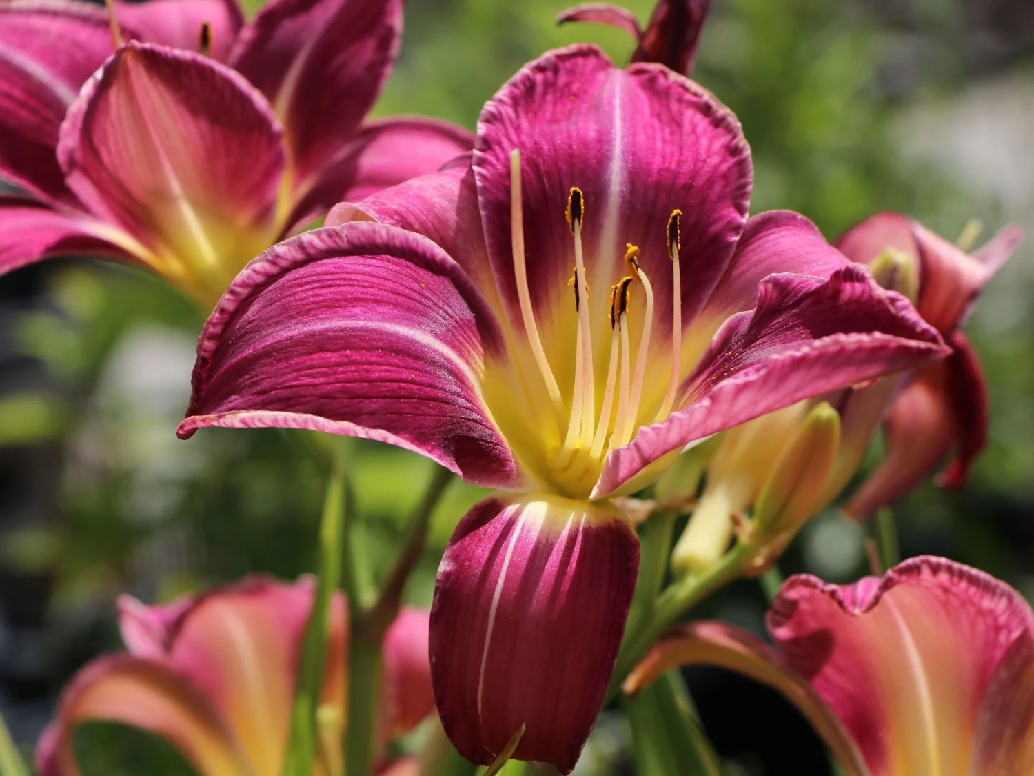 Die Taglilie ‚Lavender Deal‘ sticht aufgrund ihrer enormen Wuchshöhe von 50 bis 80 Zentimetern ebenso ins Auge, wie wegen ihrer wunderschönen Blüten. Die Staude besitzt lavendel- bis purpurrotfarbene Blütenblätter, die eine zierliche weiße Mittelrippe aufweisen, was einen sehr schönen Kontrast ergibt. Dazu fällt der gelb-grüne Schlund in der Mitte der Pflanze auf, sodass die Taglilie ‚Lavender Deal‘ aufgrund ihrer mehreren Farben zu einem echten Highlight in jedem Garten wird. Zudem bildet das grüne Blattwerk hierfür einen sehr schönen, farbigen Rahmen.