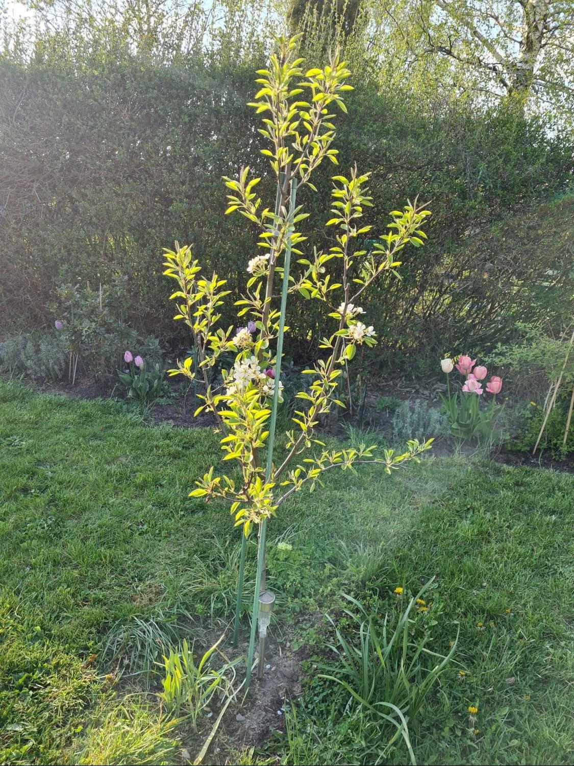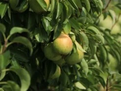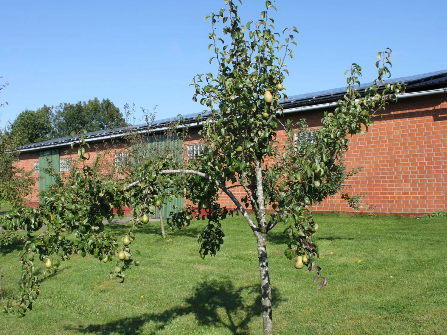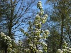 Die großen länglichen Früchte zieren sich mit einer grünen bis weißlichgrünen Schale. An einem idealen Standort färbt sich die Birne gelb. Die zimtbraune Berostung wirkt bei der Winterbirne ‚Gräfin von Paris‘ / ‚Comtesse de Paris‘ dekorativ und verleiht ihr eine charakteristische Optik. Der Birnenstrauch lässt sich Zeit mit der Reife seiner Früchte. Erst im November erreichen die Winterbirnen ihre Pflück- und Genussreife. Dafür sind sie lange haltbar und lassen sich bis in den Januar genießen. Bei Pyrus communis ‚Gräfin von Paris‘ / ‚Comtesse de Paris‘ setzt der Ertrag früh ein und ist hoch und regelmäßig. Diese Birnensorte gilt als guter Pollenspender und eignet sich wunderbar als Pflanznachbar für andere Kulturbirnen. Der Standort für die Winterbirne ‚Gräfin von Paris‘ / ‚Comtesse de Paris‘ ist sonnig ideal gewählt. Doch tolerieren die Pflanzen dieser gut winterharten Sorte auch Halbschatten. Als Großstrauch erreicht diese Birne eine Wuchshöhe von 200 bis 400 cm.