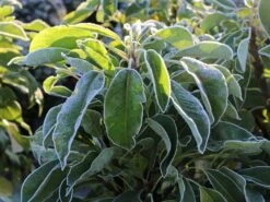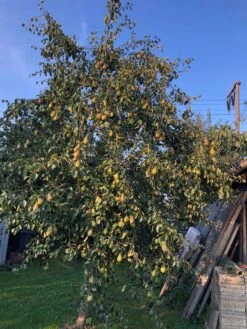 Die Zwerg-Birne ‚Helenchen‘ schenkt im Herbst eine reiche Ernte von prallen, köstlichen Früchten. Für ein Zwergobstgehölz sind ihre Birnen auffallend groß. Sie wecken den Appetit mit ihrer grünen, mit einem zarten Rot überhauchten Schale. Ihr Fruchtfleisch verwöhnt die Sinne mit seinem aromatischen, süßen und saftigen Geschmack. Die Ernte beginnt mit Anfang Oktober vergleichsweise spät. Bis in den Spätherbst hinein liefert (bot.) Pyrus domestica ‚Helenchen‘ köstliches Obst, die frisch vom Baum besonders erfrischend schmecken. Daneben bieten die Früchte viele kreative Verwendungsmöglichkeiten. Hobbyköche nutzen sie zum Verfeinern von Eis und Desserts oder für Kuchen, Marmelade und Likör. Sie sind sehr gut lagerfähig. Im Frühjahr zur Blütezeit ist die Zwerg-Birne ‚Helenchen‘ eine Augenweide. Die kleinen, schalenförmigen Blüten der Pflanze erscheinen in einem duftigen Weiß. Ein attraktiver Schmuck sind auch die eiförmigen Blätter, die in einem frischen Grün schimmern und ein leuchtendes Gelb als Herbstfärbung annehmen.